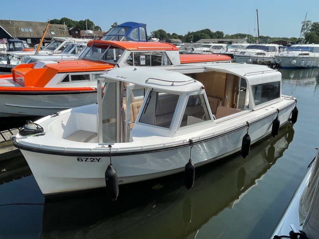 STARLIGHT 770 – 2016 – Built by Herbert Woods for a private client, one of only a handful in private ownership. 2 berth accommodation, toilet & shower, 2 burner hob and stainless steel sink, composite galley work surface, Waeco electric fridge, Victron inverter/charger, Webasto warm air heating, Side Power bow thruster. This lovely open plan picnic weekender has a airy, modern feel with split sliding roofs and comfortable seating for 10 in the saloon and forward well. Viewing a must!