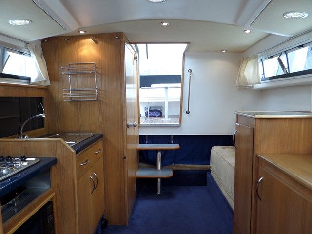 STELCO RIVERE 27 – 2000 – Single Nanni 4.220 50hp Diesel engine. 4 berths in 1 cabin with 1 head to holding tank and 1 shower. Bow thruster, Warm air heating, Battery charger, Immersion heater. A beautifully presented boat with a luxurious interior, ideal for inland cruising.