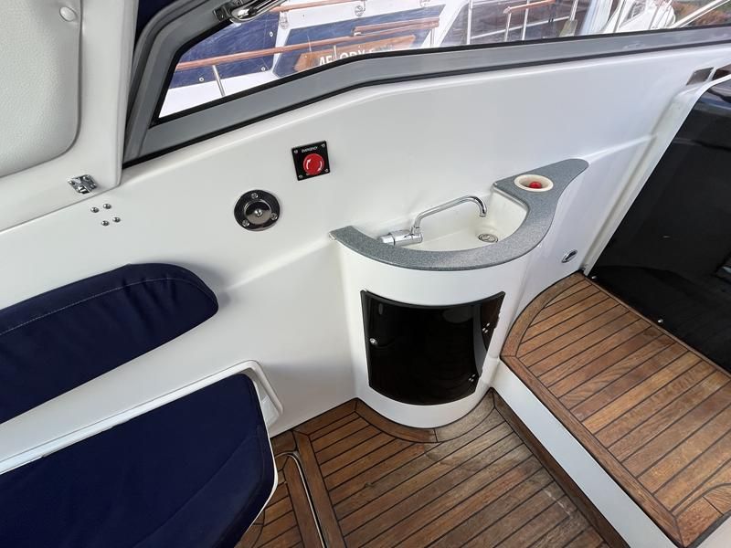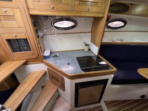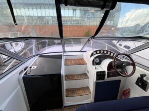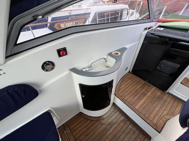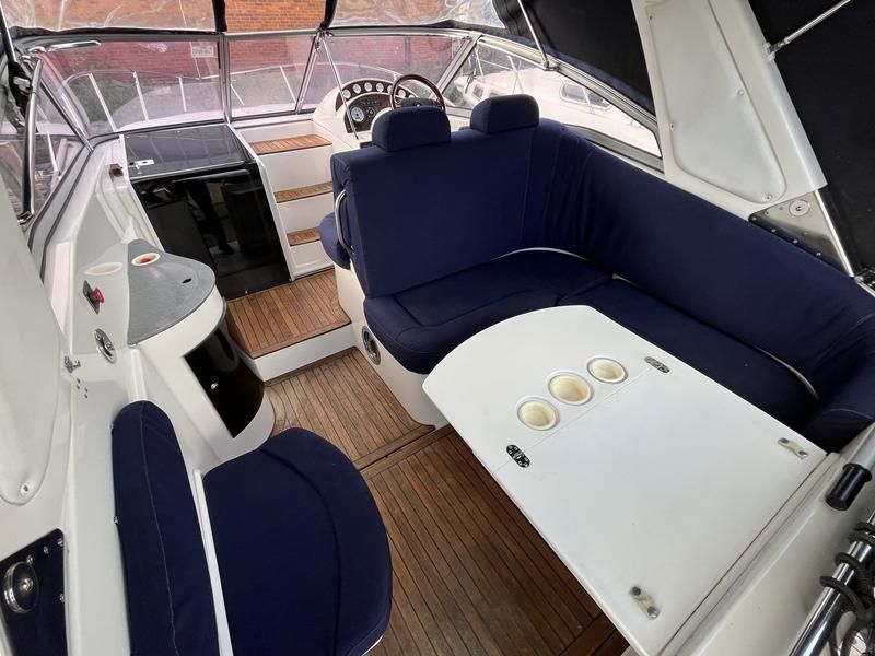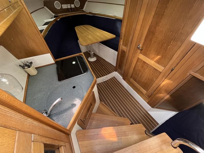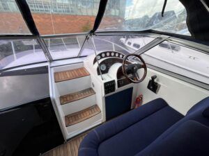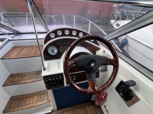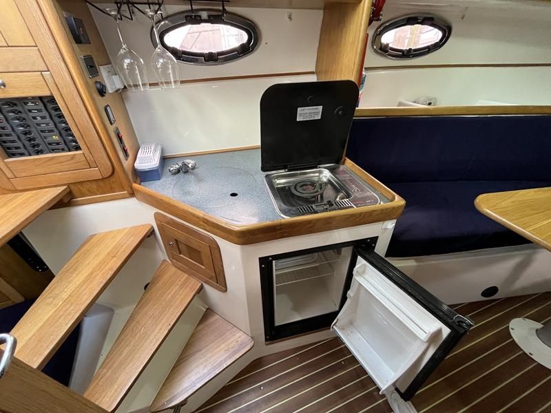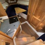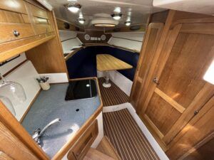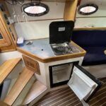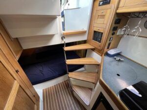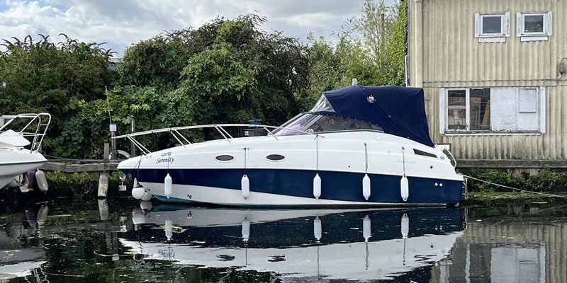 Sumatra 755 – 2006 – Powered by a single Nanni 3.100HE 29hp diesel engine on Sail drive. 4 berth accommodation with 1 x toilet/shower compartment. Specification including bow thruster, Warm air heating, electric lowering arch, electric windlass, inverter, shore power, immersion, holding tank, BSC 08/26. A modern sports style aft cockpit river cruiser with the benefit of diesel economy and lowering air draft for exploring further afield.