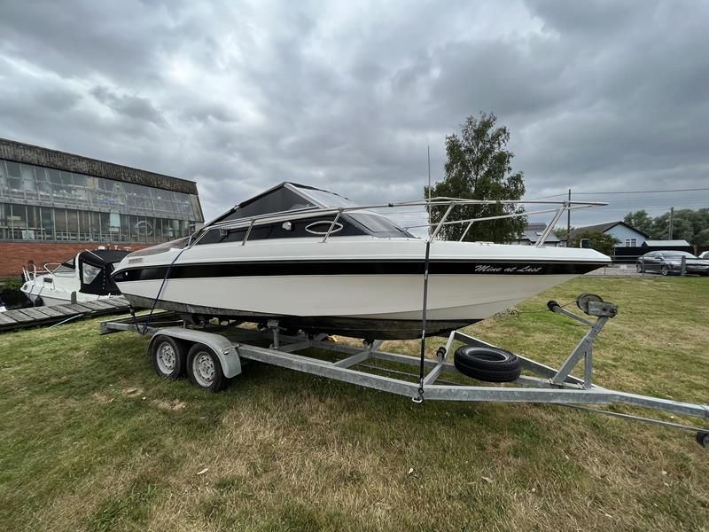 Sunbird Barletta 208 – 1991 – Powered by an OMC Cobra 4.3L 190hp petrol engine through stern drive. Full Tonneau cover, full canopy with section for spray hood, foredeck sun pad, cushioned cockpit seating in Silvertex material, cuddy cabin with 2 berth accommodation, cockpit speakers, BSC 10/25, Waterski tow eye. Twin axel roller trailer included in the sale. An exciting sports day cruiser with plenty of seating and capable of towing 2 people!
