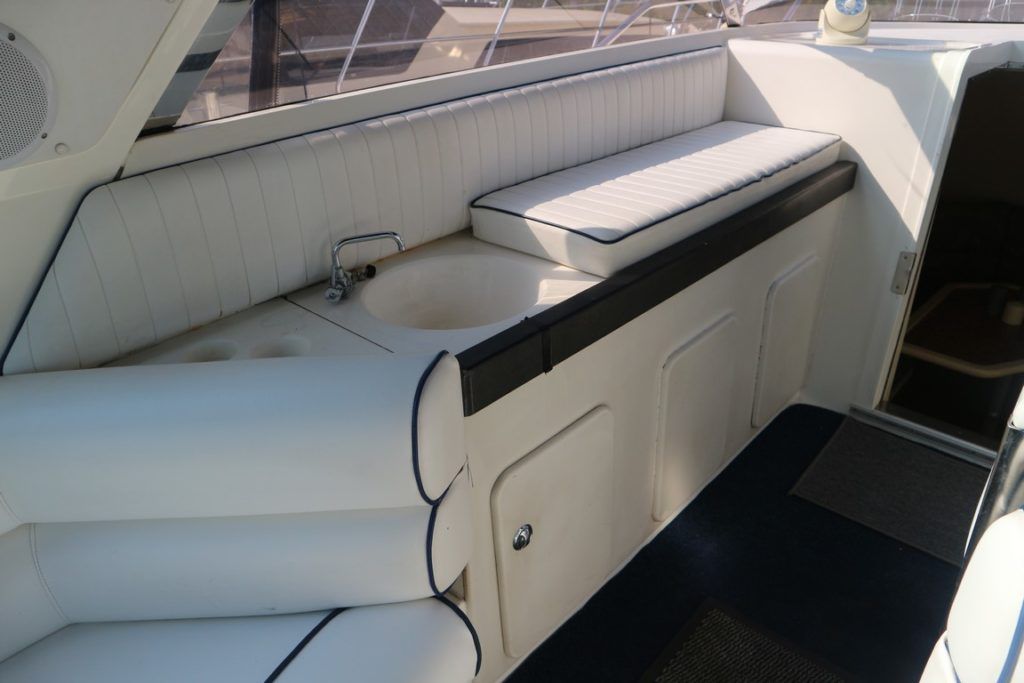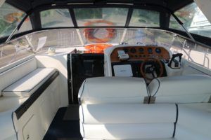 SUNSEEKER MARTINIQUE 36 – 1991 – Powered by twin Volvo AQAD41 200hp diesels. 6 berth accommodation with one spacious heads with shower. Specification to include; Bennett trim tabs, electric windlass, NorthStar chart plotter with scanner and shore power supply. Striking Sunseeker styling with a large sociable cockpit and comfortable accommodation!