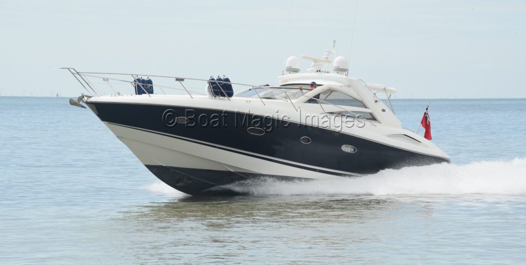 SUNSEEKER PORTOFINO 53 – 2006 – COMING SOON – Powered by twin MAN 800hp diesels through a shafts – 6 berth accommodation across 3 cabins with two toilets and two showers. Well specified to include; Side Power bow and stern thrusters, trim tabs, electric windlass, Kohler generator, Raymarine E120 plotter and radar, Autohelm, VHF. Striking navy hull, electric sliding cockpit hard top roof and teak laid cockpit and bathing platform! A stunning sports cruiser offering masses of performance, accommodation and social space! Well kept and presented by current experienced owner and used to cruise along the East Coast. Viewing highly recommended on this one!