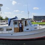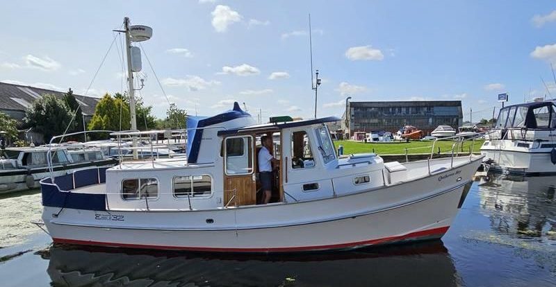 Transpacific Eagle 32 – 1991 – Powered by a Lehman 2725E 135hp diesel engine which has been recently rebuilt. Accommodation up to 5 in fore cabin and saloon with 1 x toilet/shower compartment. Spec inc. bow thruster, electric windlass, warm air heating, shore power, battery charger, solar panel charger, immersion heater, full teak decks (recently re-caulked), a host of navigation equipment including Raymarine Radar & plotter, and Simrad Autopilot. A highly maintained example of these Trawler style motor cruisers with a beautifully presented teak interior. A rare find with early viewing being highly encouraged.