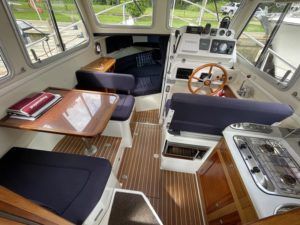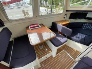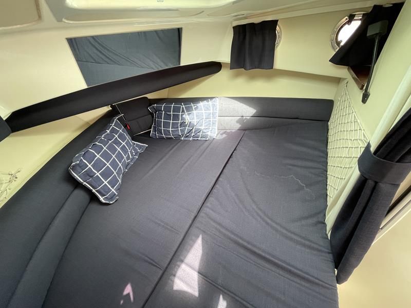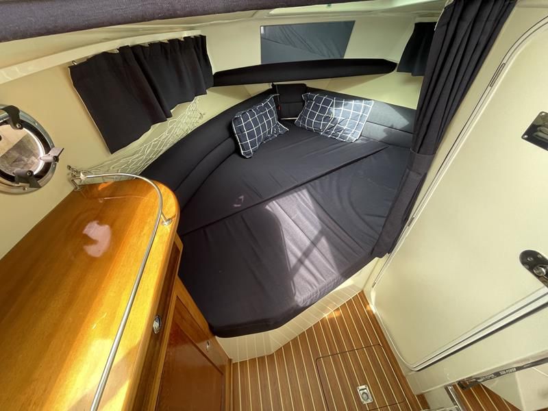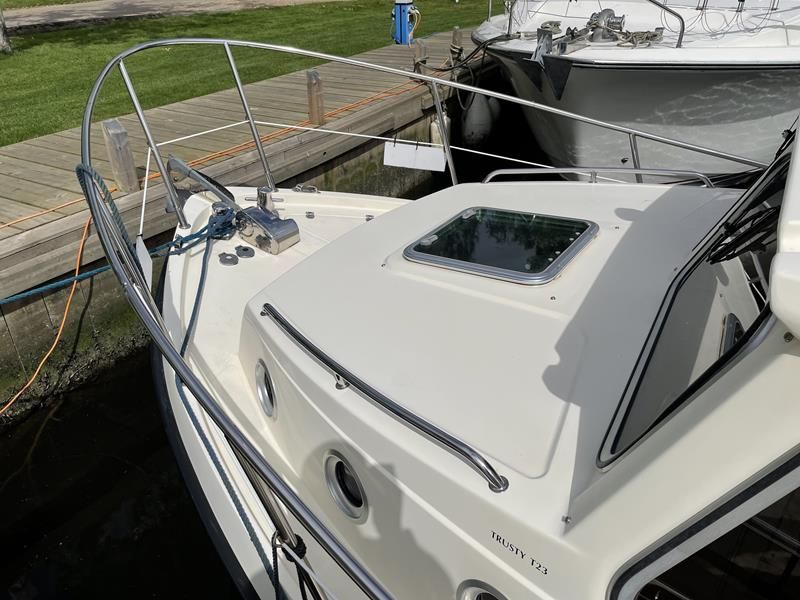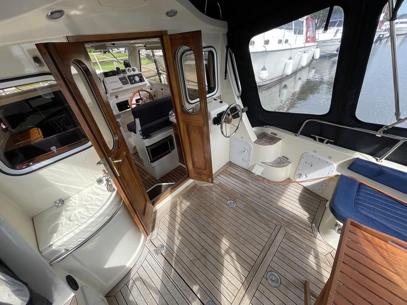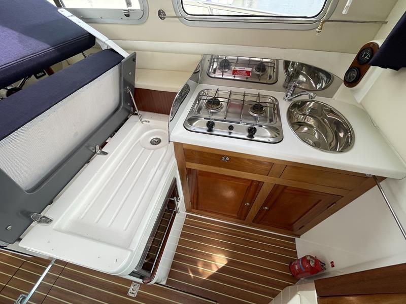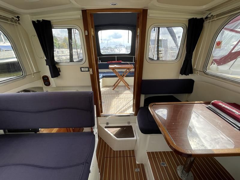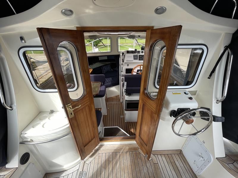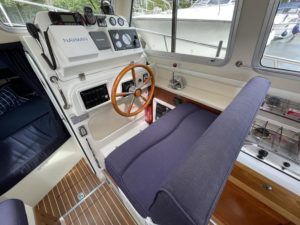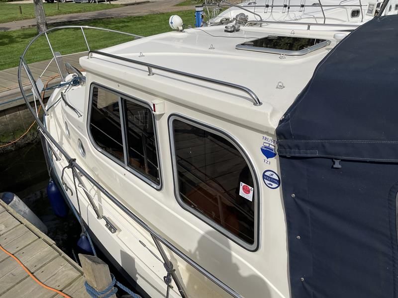 TRUSTY T23 – 2008 – Powered by a single Yanmar 4JH 4AE 55hp diesel engine through a shaft – 4 berth accommodation with 1 toilet and shower facility. Specification to include Bowthruster, warm air heating, holding tank, shore power supply with sockets, charger and immersion and electric windlass. BSC Expires 03/2025 Teak laid cockpit and striking blue hull. A very well equipped cruiser with plenty of character! Solid build quality throughout.
