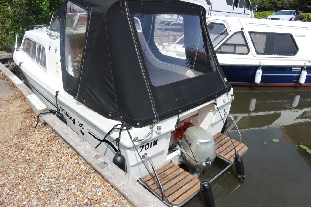 VIKING 20 – Built 2011 first commissioned 2013, Honda 15hp outboard, 4 berths, chemical toilet, warm air heating, shower, two burner, oven with grill, fridge, shore power, gas water heater. BSC. Perfect family starter craft ideal for cruising inland waterways. NYA STOCK – 3 month major mechanical fault warranty for engine and gearbox.