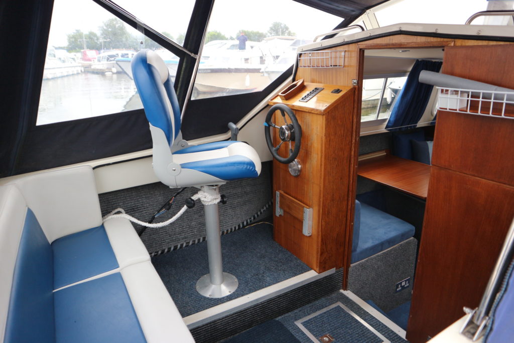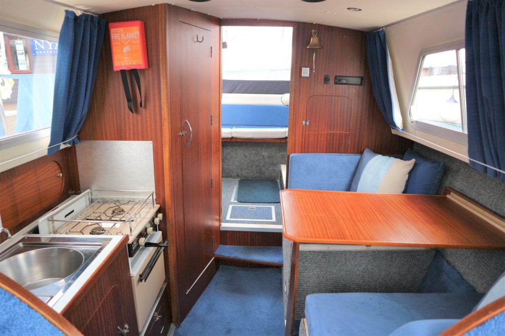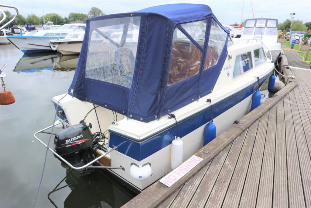 VIKING 20 – Circa 1979 – 1 x Suzuki 4-stroke 15hp Petrol Outboard Engine. 4 berth accommodation with 1 x porta loo in compartment. Galley with 2 burner hob, oven & grill. Spec including shore power & 12v. BSC 05/22. Benefiting from an extensive refurbishment carried out in 2014 making this a very well presented Viking 20. Ideal first time family cruiser for exploring the Inland Waterways.