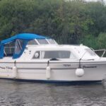Viking 20 – 2008 – Single Honda 15hp 4 stroke outboard petrol engine with electric start.  4 berth accommodation with a single toilet and shower compartment. Specification to include; purpose built bathing/board platform, navigation lights, warm air heating, immersion heater, full galley, GPS speedometer, new canopy in 2021. “Jemima” is a nice example of these popular motor cruisers and is an ideal starter boat.  A perfect craft on which to explore the Broads.  Supplied with an NYA three month engine and gearbox warranty.