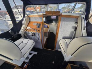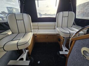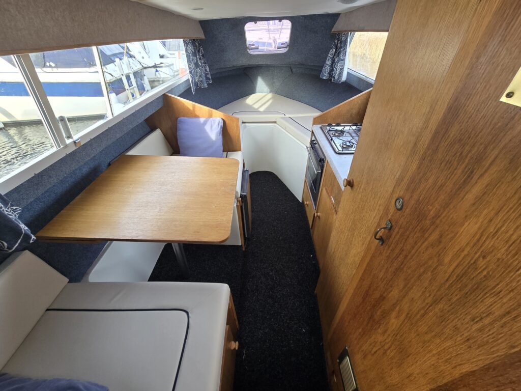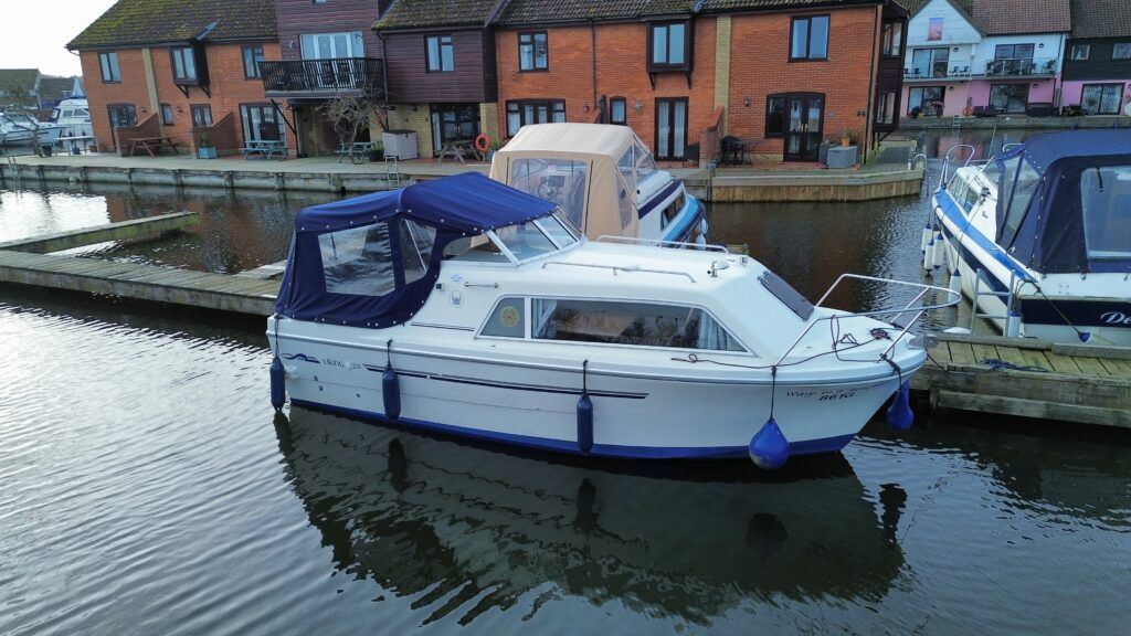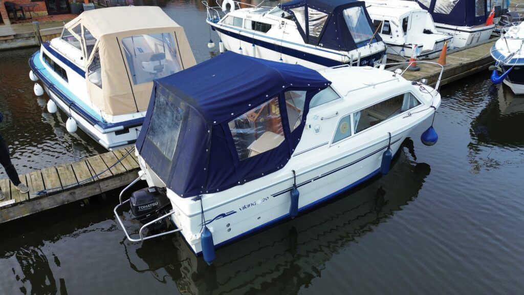 Viking 20 – 2004 – Powered by a 15hp Tohatsu Four Stroke Outboard engine (Fitted 2014). 4 berth accommodation with a separate toilet and shower compartment . Specification to include: Shore power, battery charger, water heater, Raymarine speed and depth, 12v sockets, galley with 4 burner gas hob, cooker and refrigerator. BSC 2027. A clean and tidy example, offering an affordable introduction to boating – ideal for exploring the Norfolk Broads.