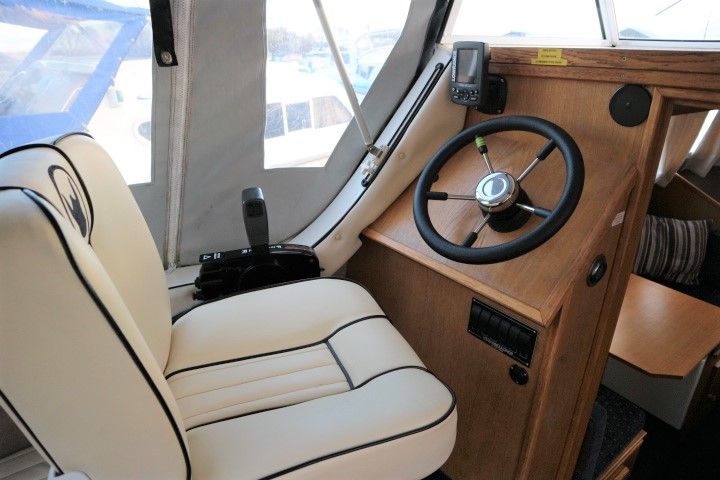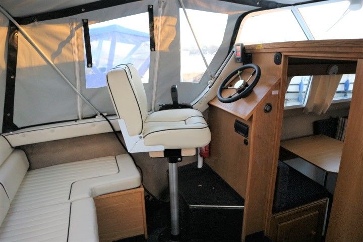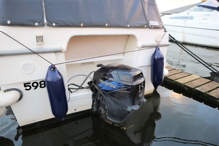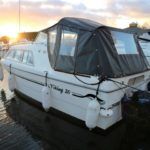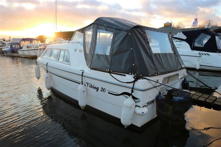 VIKING 20 – 2009 – 1 x Tohatsu Fourstroke 15hp petrol outboard engine. 4 berth accommodation with 1 x toilet to holding tank/shower compartment. Galley with 2 burner hob, oven & grill, electric fridge. Spec including Shore power, Truma hot water heater, fish finder, BSC 09/21. The perfect family starter boat with generous living space, offering practical boating. NYA STOCK – Fully prepared by our Service Centre.