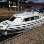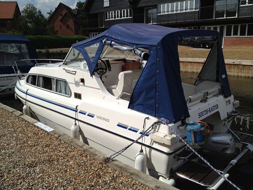 VIKING 22 – 1992, 1 x 15hp Honda Four Stroke petrol outboard (new 2008), 4 berth accomodation, hot and cold water, shower, 2 burner oven and grill, 240v inlet, new BSC (expires June 2017) Canopy replaced 2010, antifouled spring 2012, full winter cover available by seperate negotiation. This is a very clean and well cared for example.