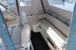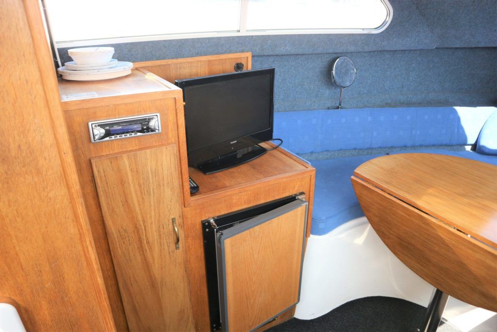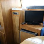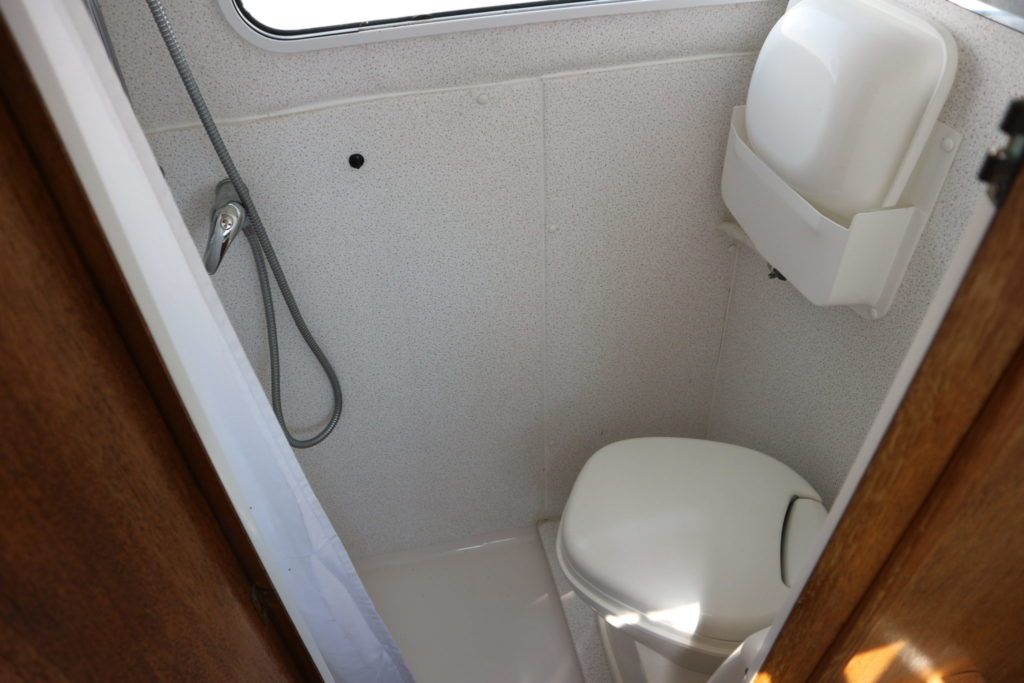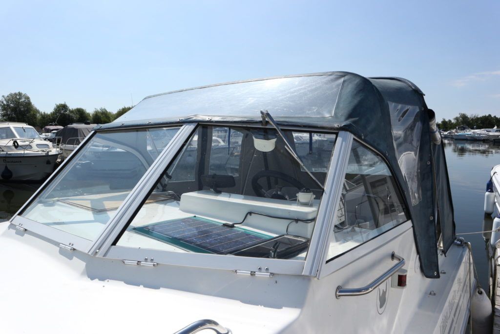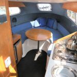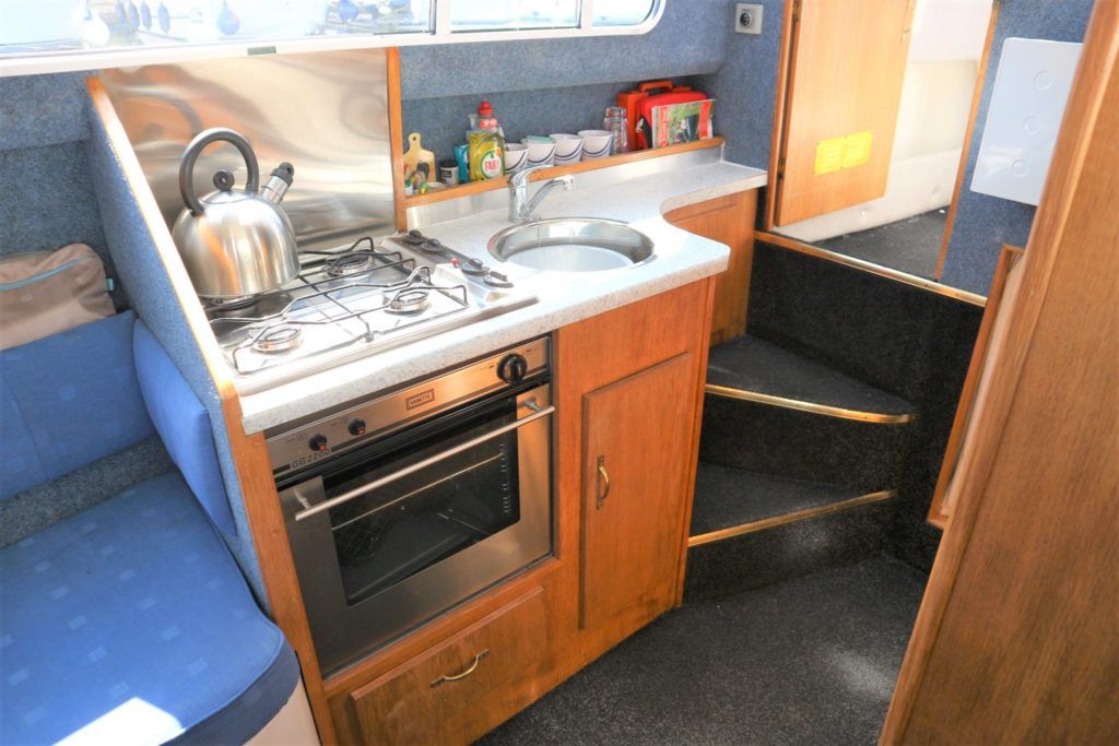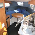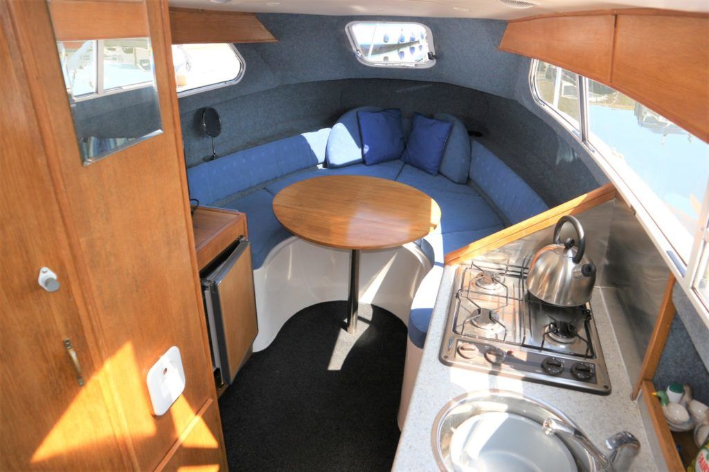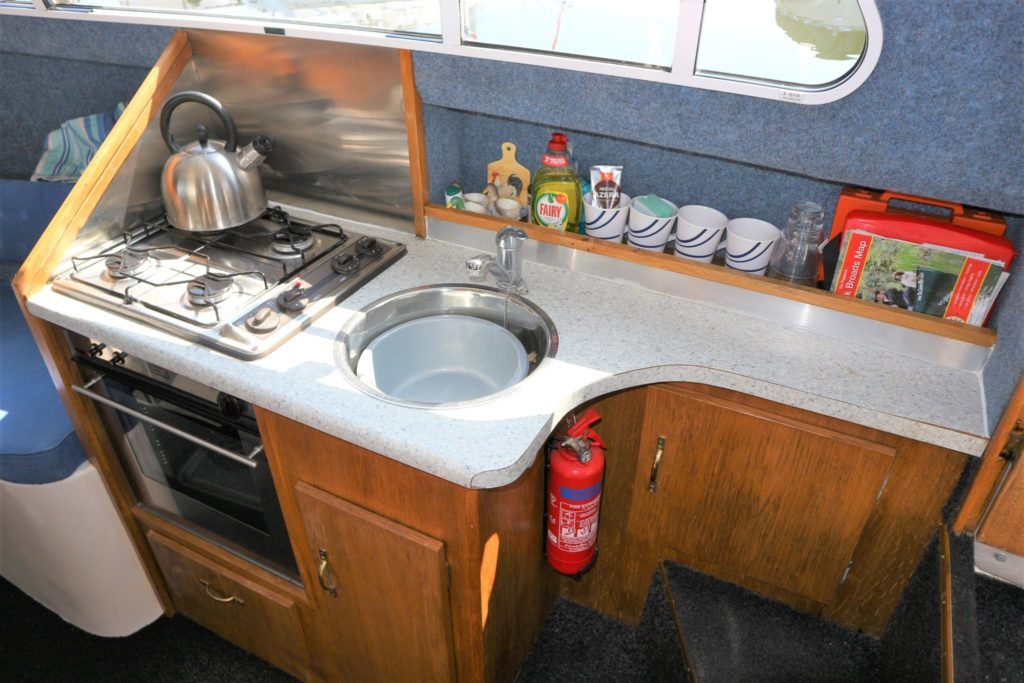 VIKING 22 WIDE BEAM – 2004 – Honda 30hp Outboard Petrol engine. 4 berth accommodation with 1 x cassette toilet/ shower compartment. Galley with four burner hob, oven & electric fridge. Spec including water heater, shore power, speed and depth log, solar panel charger, electric cabin heater, folding canopy and screens. BSC 07/19. A good example of this modern Viking model with the benefit of a lower air draft for cruising further afield.