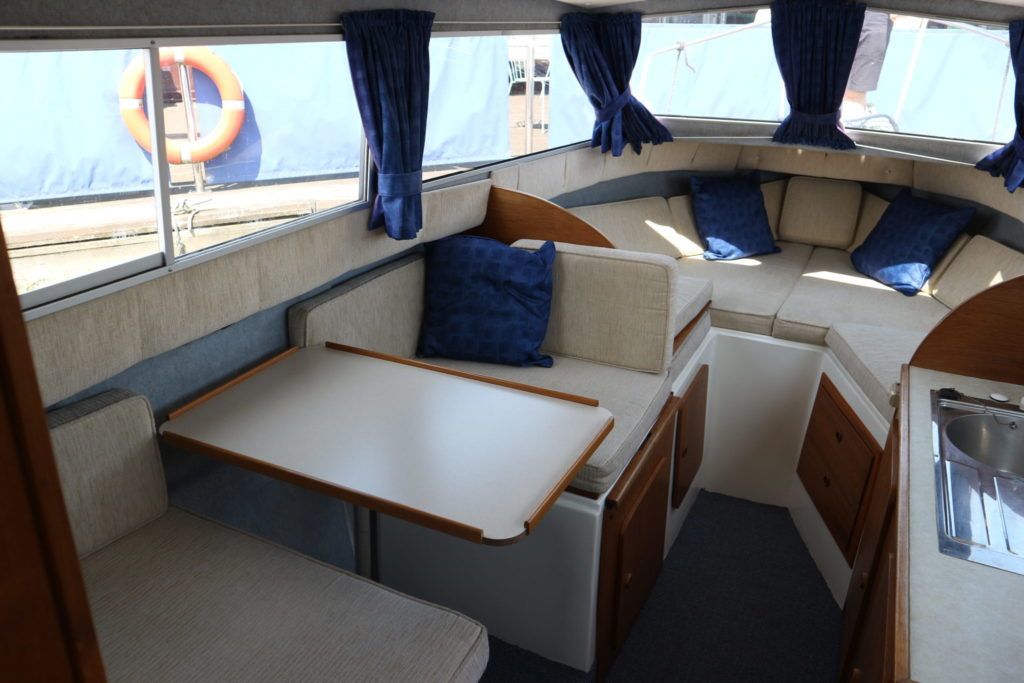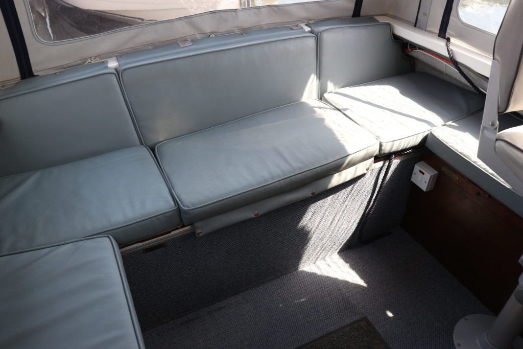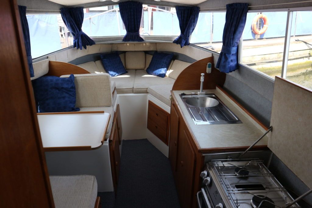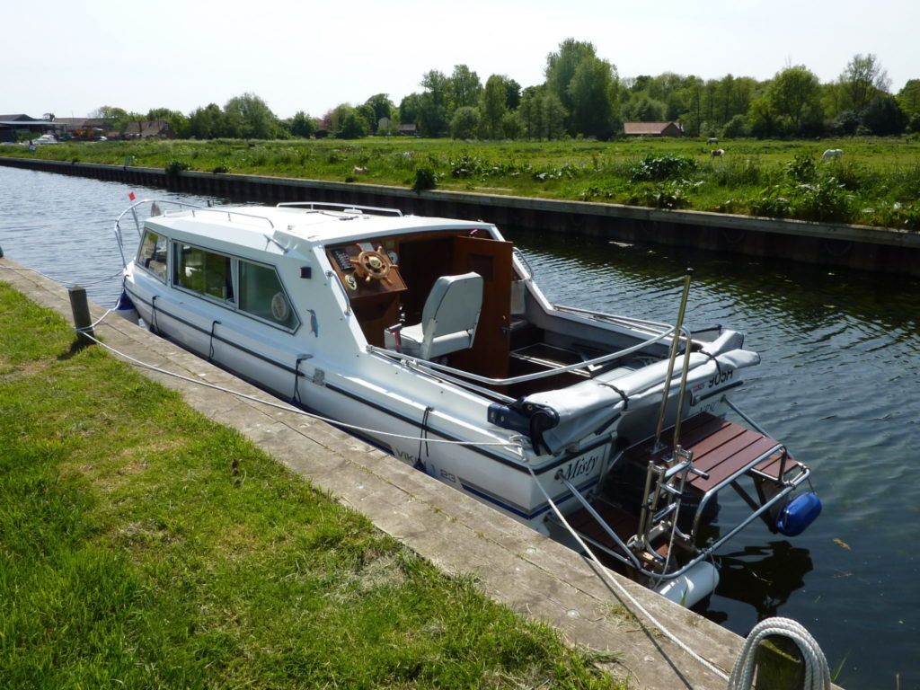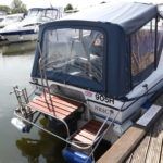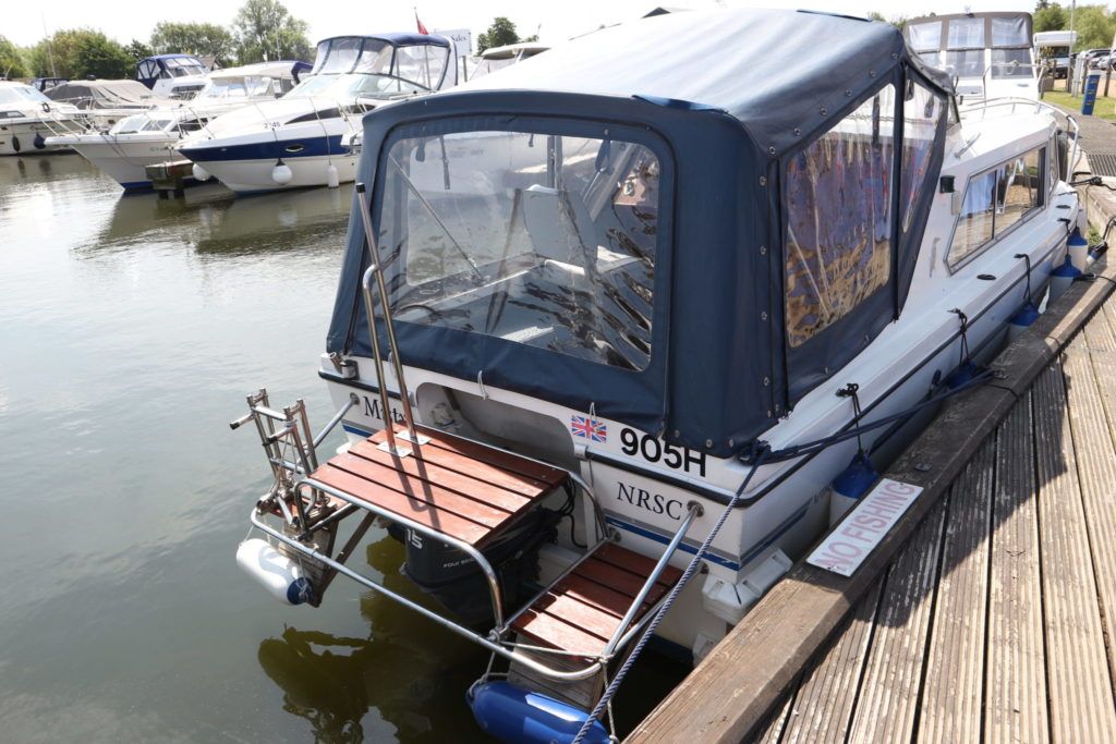 VIKING 23 – 1991 – 15HP Yamaha outboard (new 2009). 4 berth accommodation with toilet to holding tank. Galley with two burner hob, oven and grill, warm air heating system, shore power, folding and removable windscreens, solar panel charger, full canopy, new water tank 2018, BSC 04/20. Perfect family cruiser with a low air draft and spacious accommodation for her size.