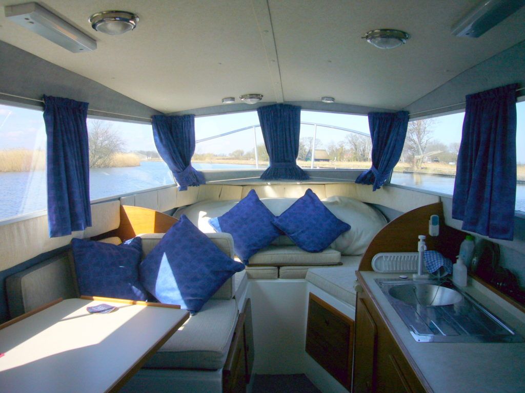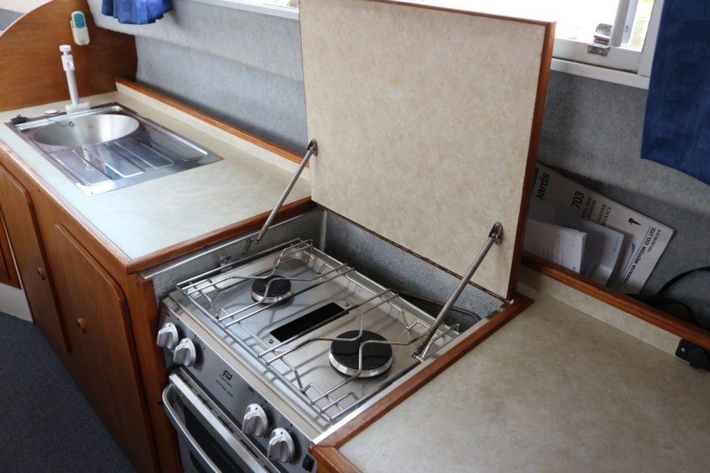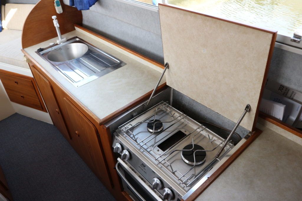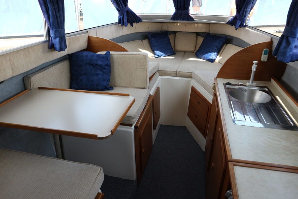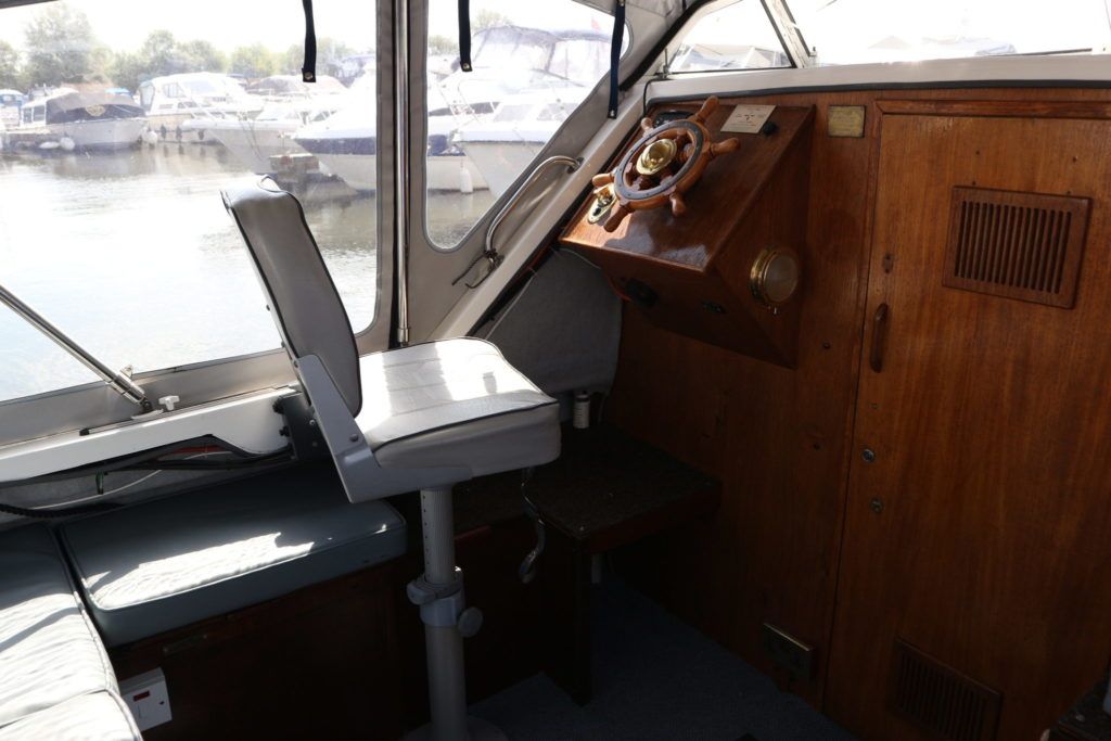 VIKING 23 – 1991 – 15HP Yamaha outboard (new 2009). 4 berth accommodation with toilet to holding tank. Galley with two burner hob, oven and grill, warm air heating system, shore power, folding and removable windscreens, solar panel charger, full canopy, new water tank 2018, BSC 04/20. Perfect family cruiser with a low air draft and spacious accommodation for her size.