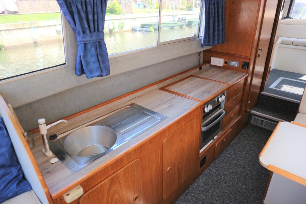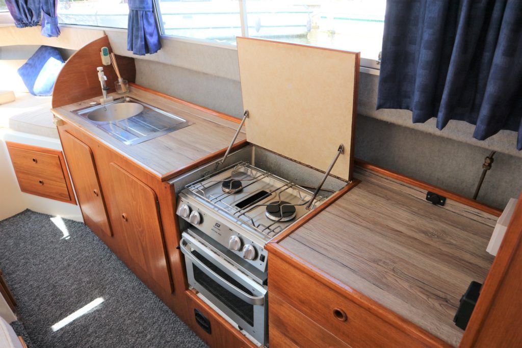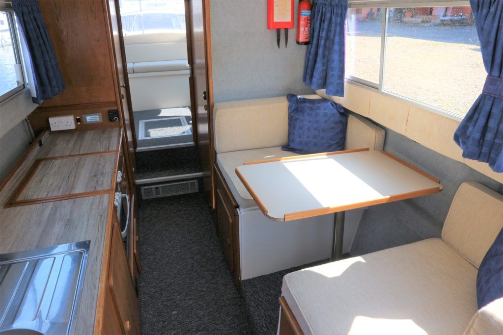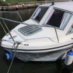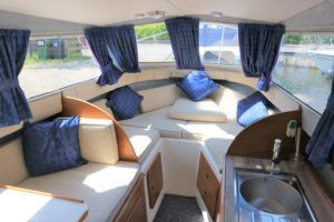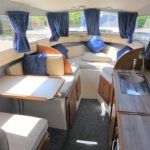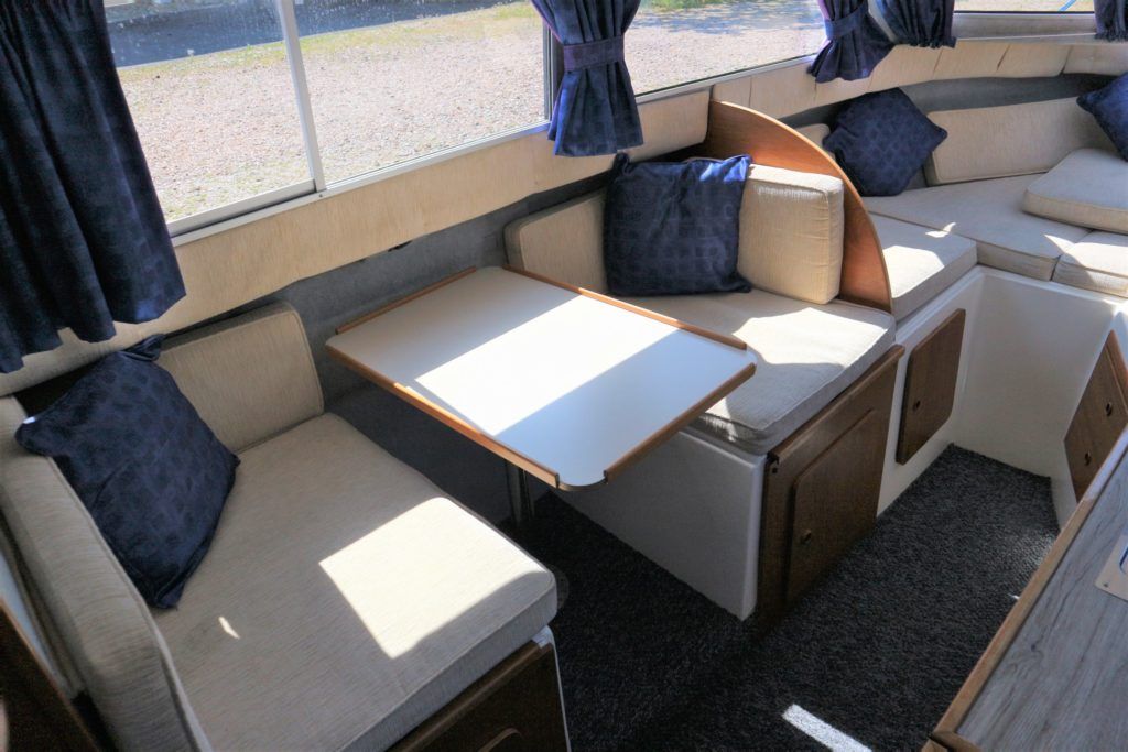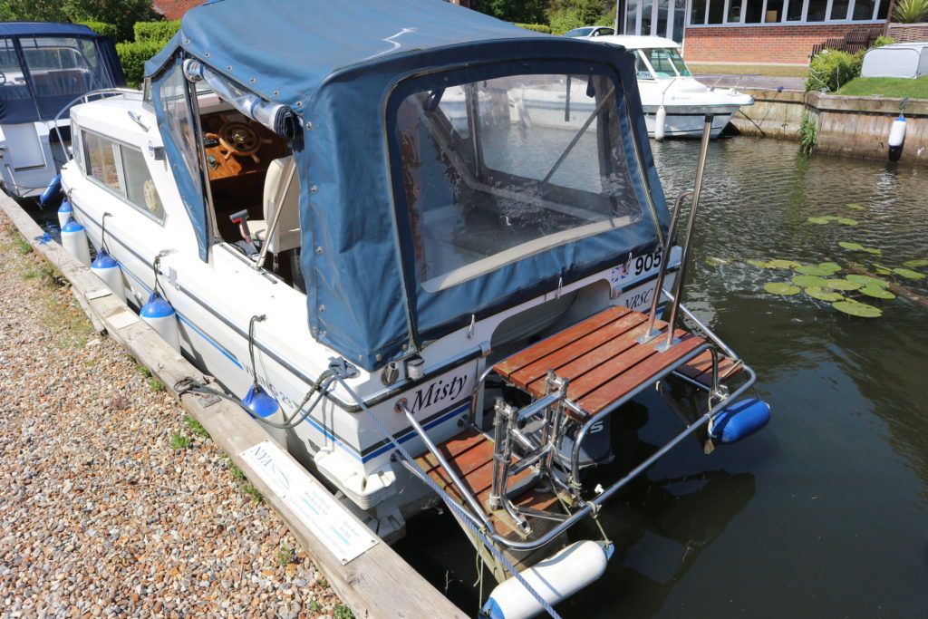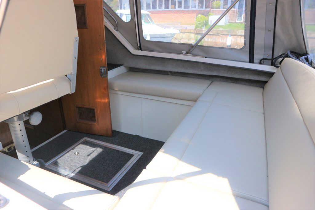 VIKING 23 – 1991 – 15HP Yamaha outboard (new 2009). 4 berth accommodation with toilet to holding tank. Galley with sink, two burner hob, oven and grill, warm air heating system, shore power, folding and removable windscreens, solar panel charger, full canopy, new water tank 2018, new cockpit upholstery & galley surfaces in 2020. A well presented family cruiser with a low air draft and spacious accommodation for her size. NYA stock with 3 month engine & gearbox warranty.