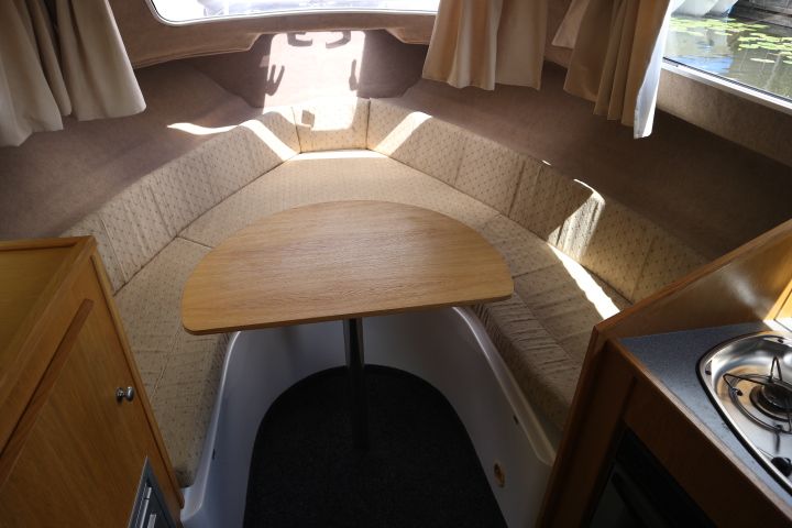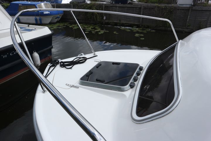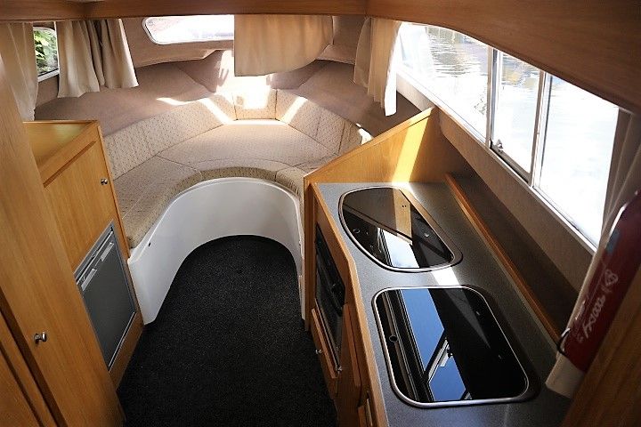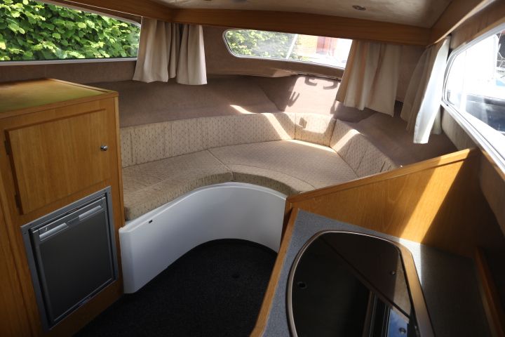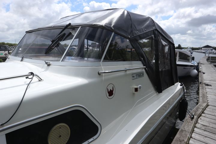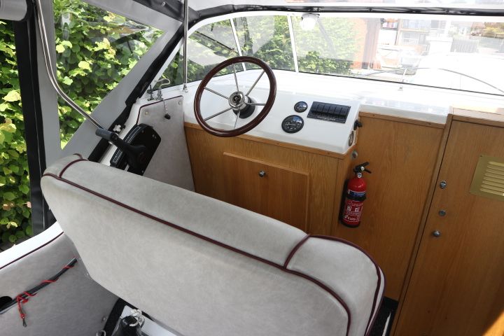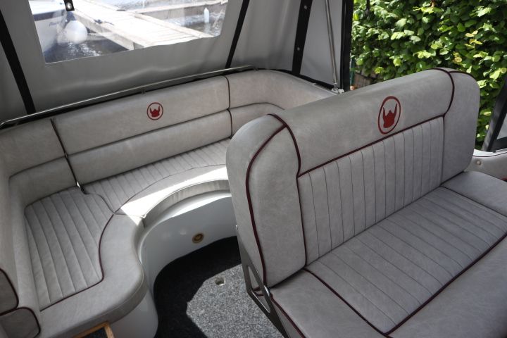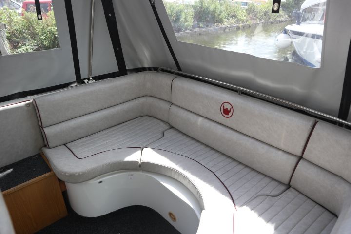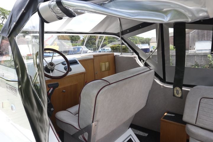 VIKING 24 – 2012 – Mercury 30Hp 4 stroke outboard petrol engine. 4 berth accommodation, 1 x cassette toilet & shower compartment. Shorepower, battery charger, gas water heater & blown warm air heating, galley with 3 burner hob, oven and grill, fridge & sink, BSC 02/21. Fully folding canopy and removable screen giving a low air draft for cruising further afield. NYA STOCK – Fully prepared by our Service Centre.