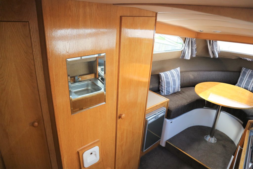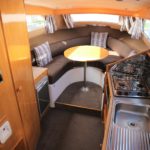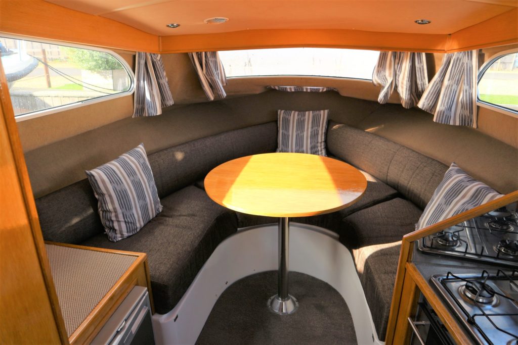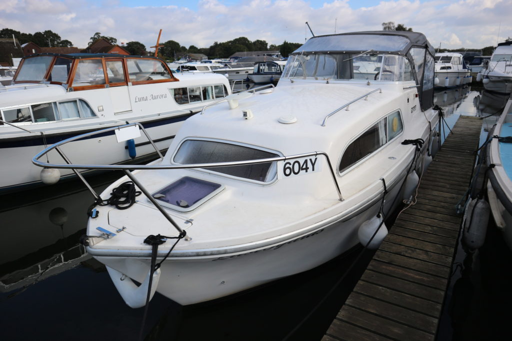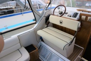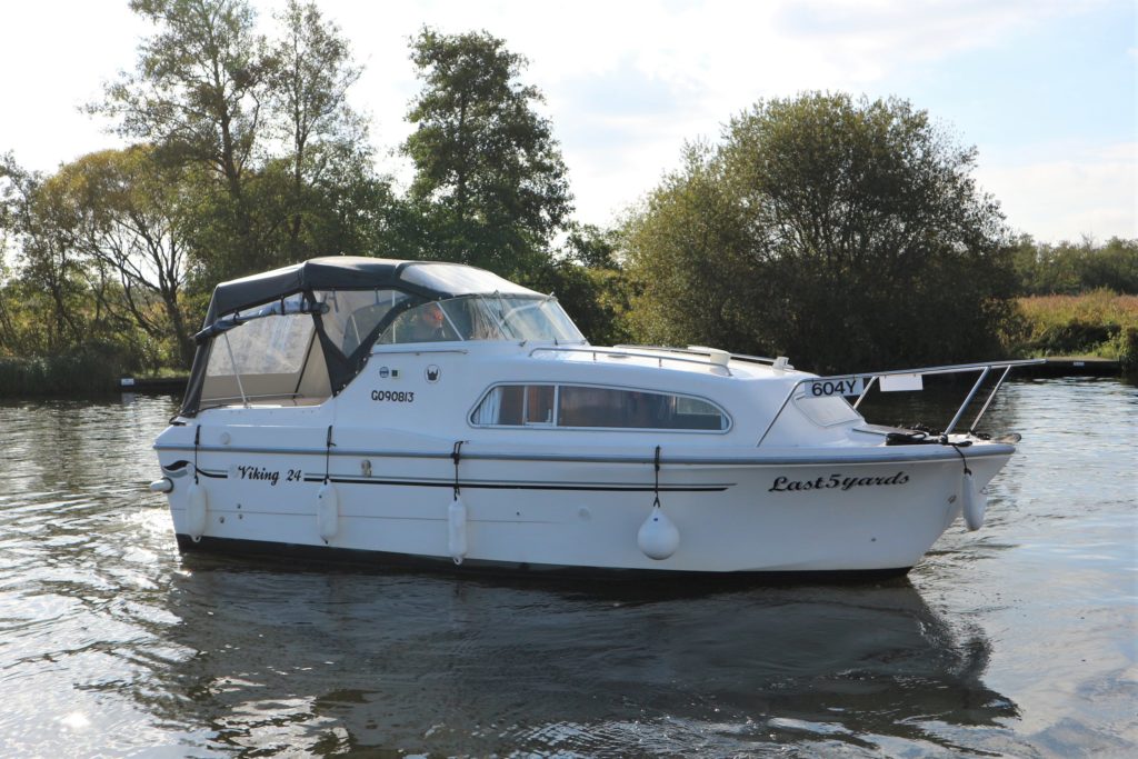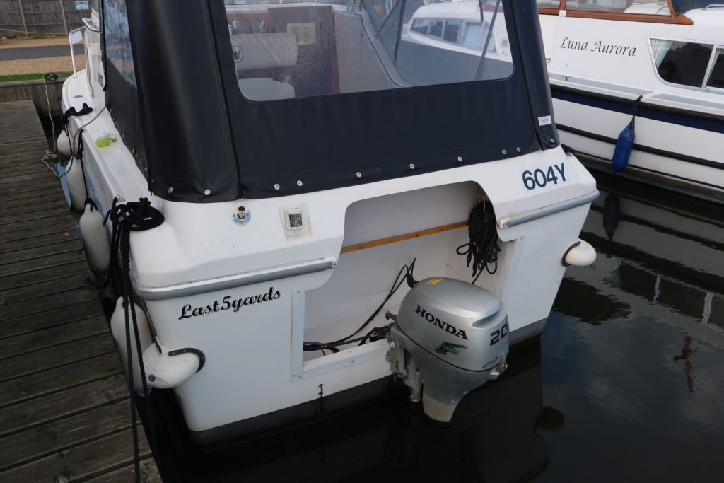 VIKING 24 WIDEBEAM – 2008 – 1 x Honda Four Stroke 20hp outboard petrol engine. 4 berth accommodation (additional summer berth in cockpit) with 1 x cassette toilet/shower compartment. A high specification including shore power, battery charger, warm air heating to cabin and cockpit, truma water heater, speed & depth log, synthetic teak decking to cockpit and more! New canopy 11/17, upholstery, carpets and headlining renewed in 2015. A well presented example offering comfort and style with Viking practicality. NYA STOCK – 3 Month engine & gearbox warranty.