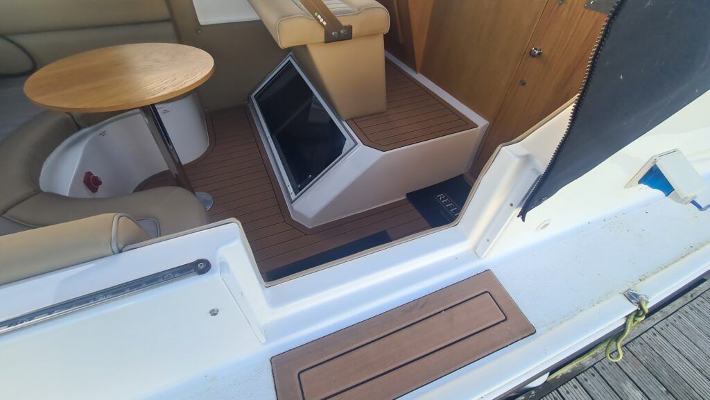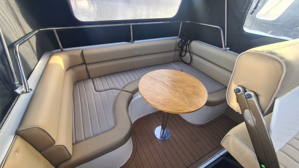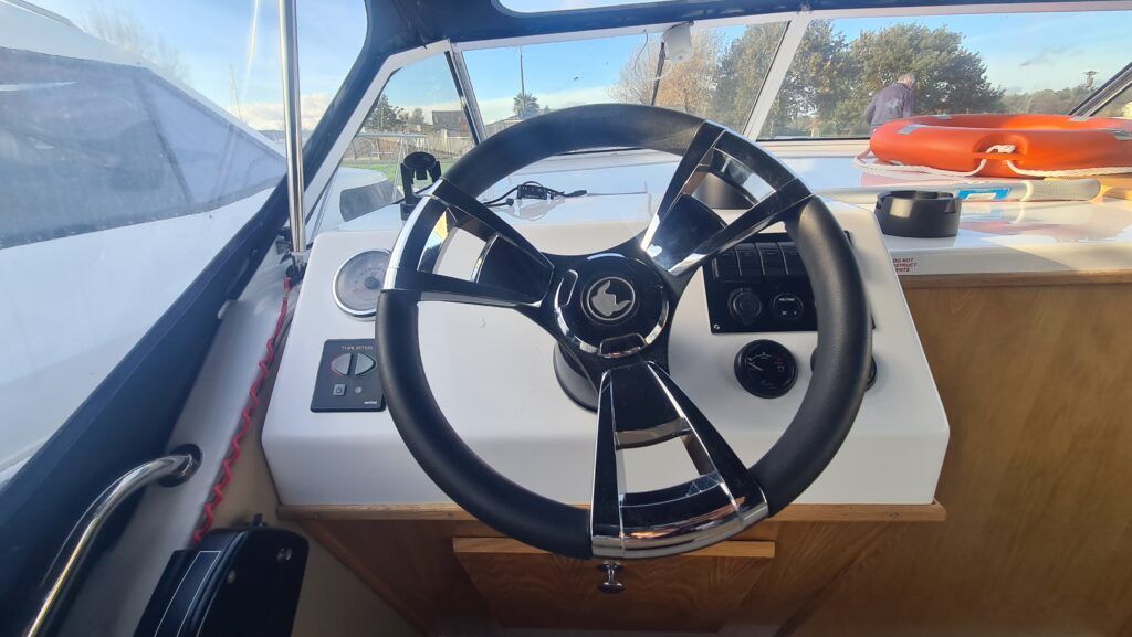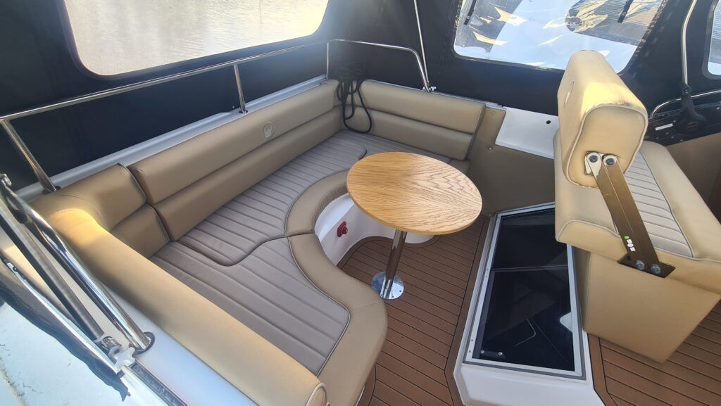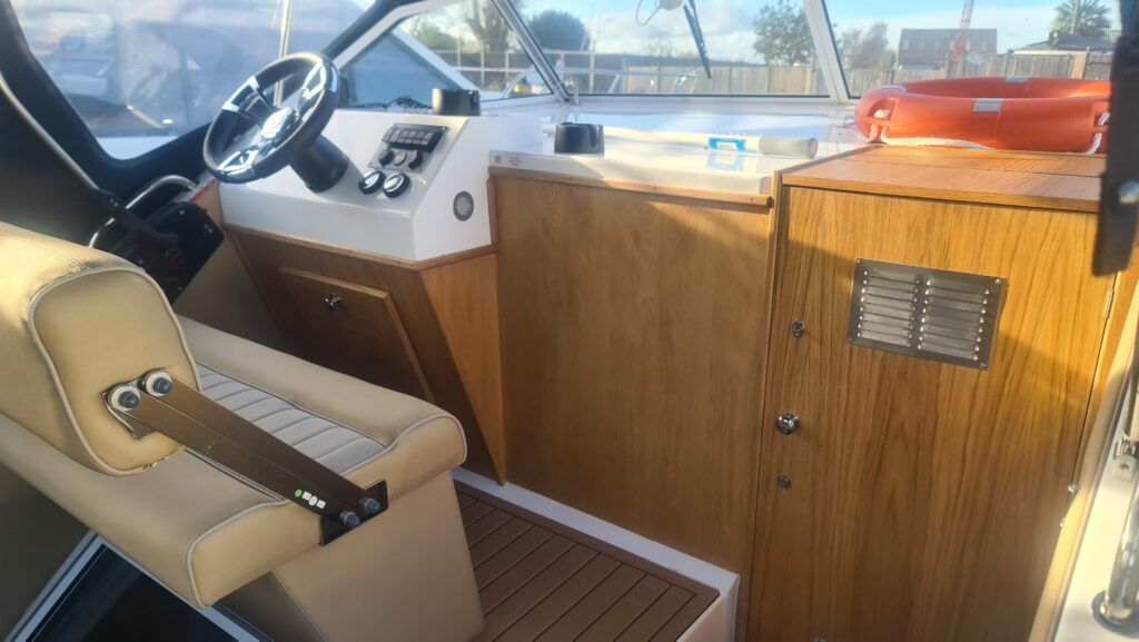Viking 26 Golden Crown – 2025 – Mercury 40 hp EFI outboard engine – 6 berth accommodation, bow thruster, gas warm air heating, battery charger, shore power, gas hot water system, flip back helm seating, electric flush toilet, hydraulic steering, speed and depth gauge, One owner and purchased from new in March /April 2025 , with low air craft and generous accommodation the Viking 26 is perfect for family cruising.