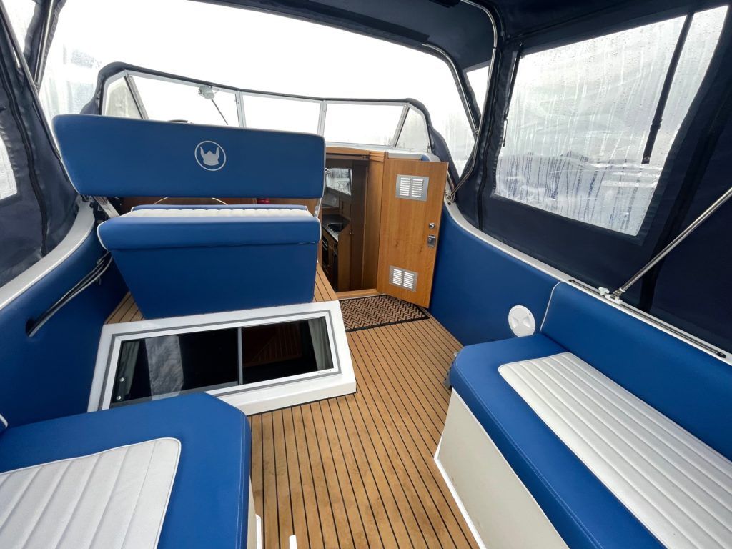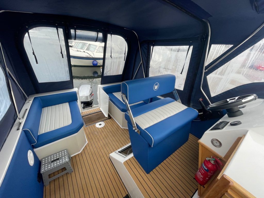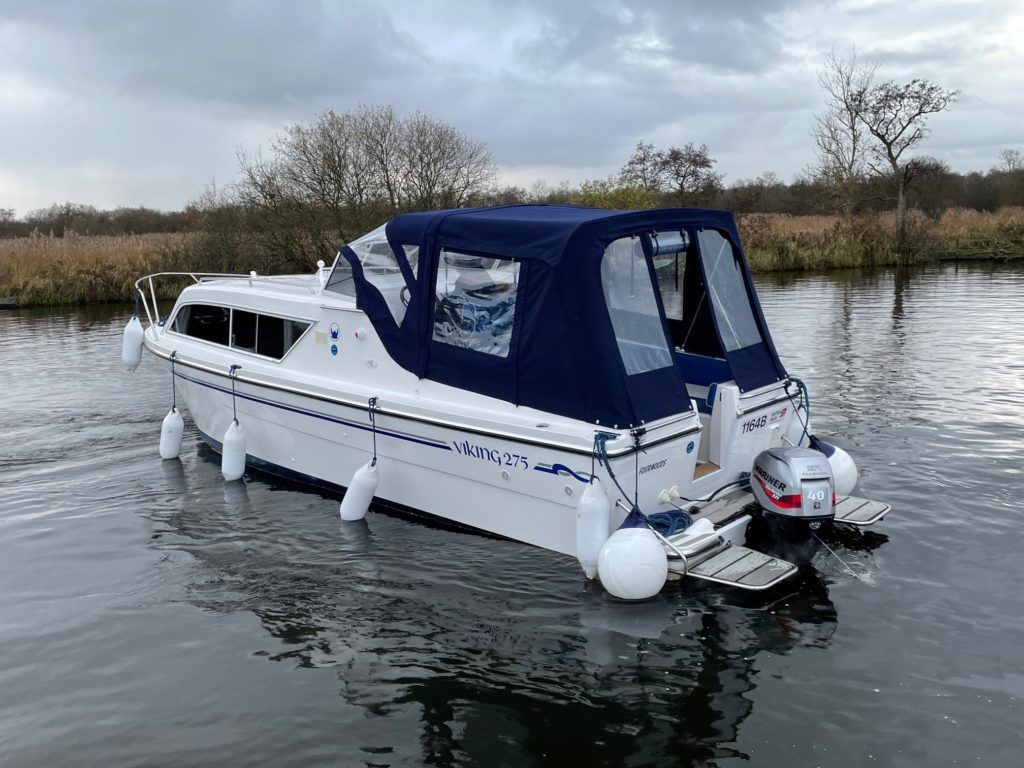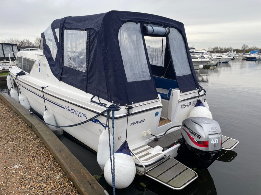 VIKING 275 – 2021 – Powered by a Mariner EFI 40hp outboard engine. 6 berth accommodation, Propex warm air heating, Malaga gas & 240v water heater. Toilet and shower compartment with pump out toilet, holding tank and gauge. Bow thruster, powered engine tilt, Serviced in October 2021 at 70 hours. BSS valid until February 2025. Electric anchor winch fitted July 2021. At under a year old, this boat looks and feels like new! Available for immediate delivery, call for more details.