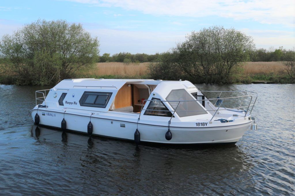 VIKING 31 – 2020 – Powered by a Yanmar 40hp diesel engine on hydraulic drive. Luxury 2 berth accommodation with island double berth and en-suite toilet and shower in separate cubicles. A very high specification including bow and stern thrusters, electric windlass, warm air heating, battery charger, shore power, inverter, solar panels, battery monitoring system, reversing camera, split sliding canopy, speed & depth log, BSC 03/24. At just over a year old this is a rare opportunity to take delivery of a beautifully presented nearly new boat this season!