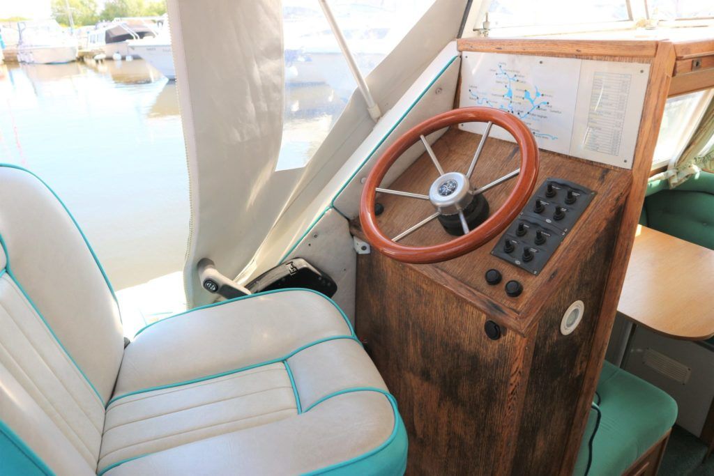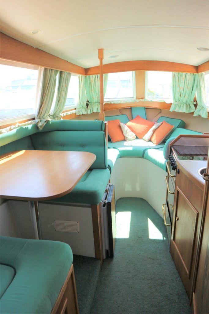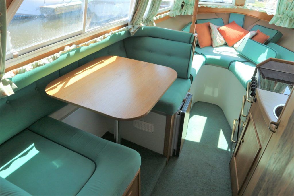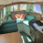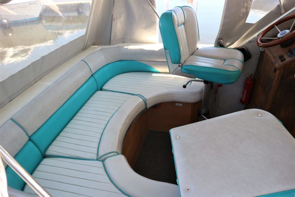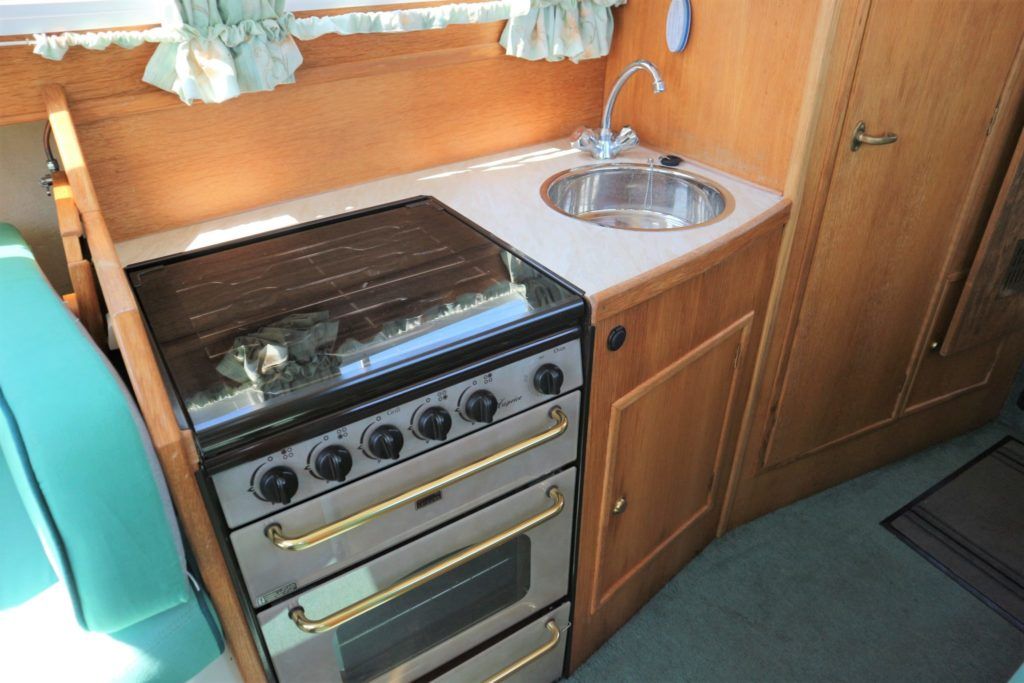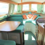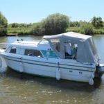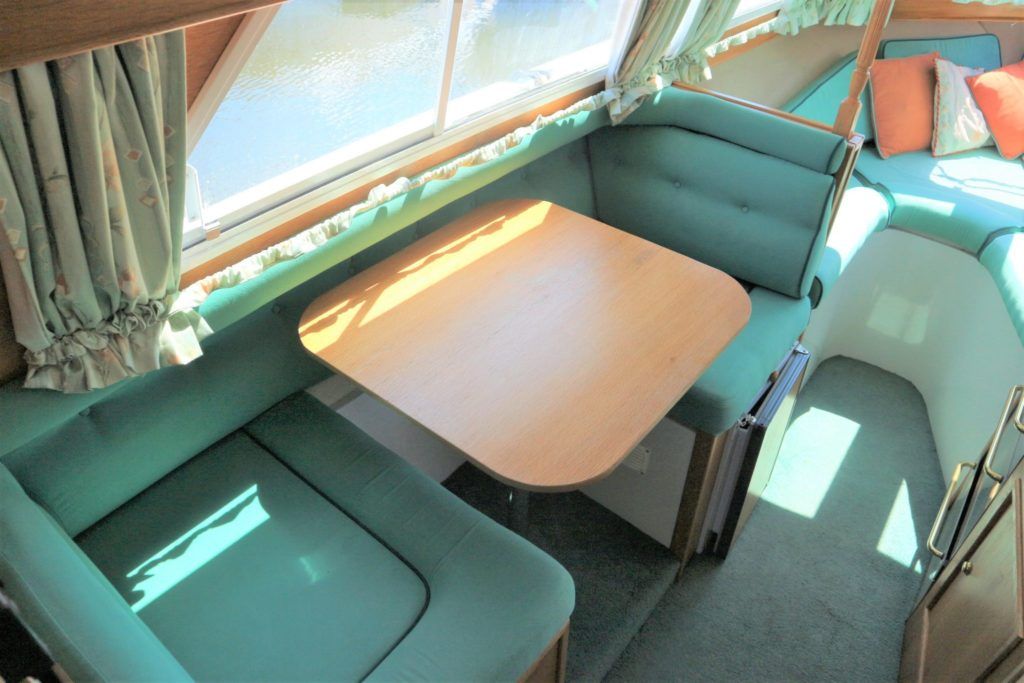VIKING JUBILEE 20 – 1999 – 1 x Honda 20hp outboard engine (fitted 2013). 4 berth accommodation with 1 x portaloo & shower compartment. Galley with full size gas cooker & electric fridge. Spec including Propex warm air heating, water heater, folding windscreens for access through lower bridges, BSC 09/19. An ideal starter boat offering spacious & versatile accommodation with a sociable cockpit.