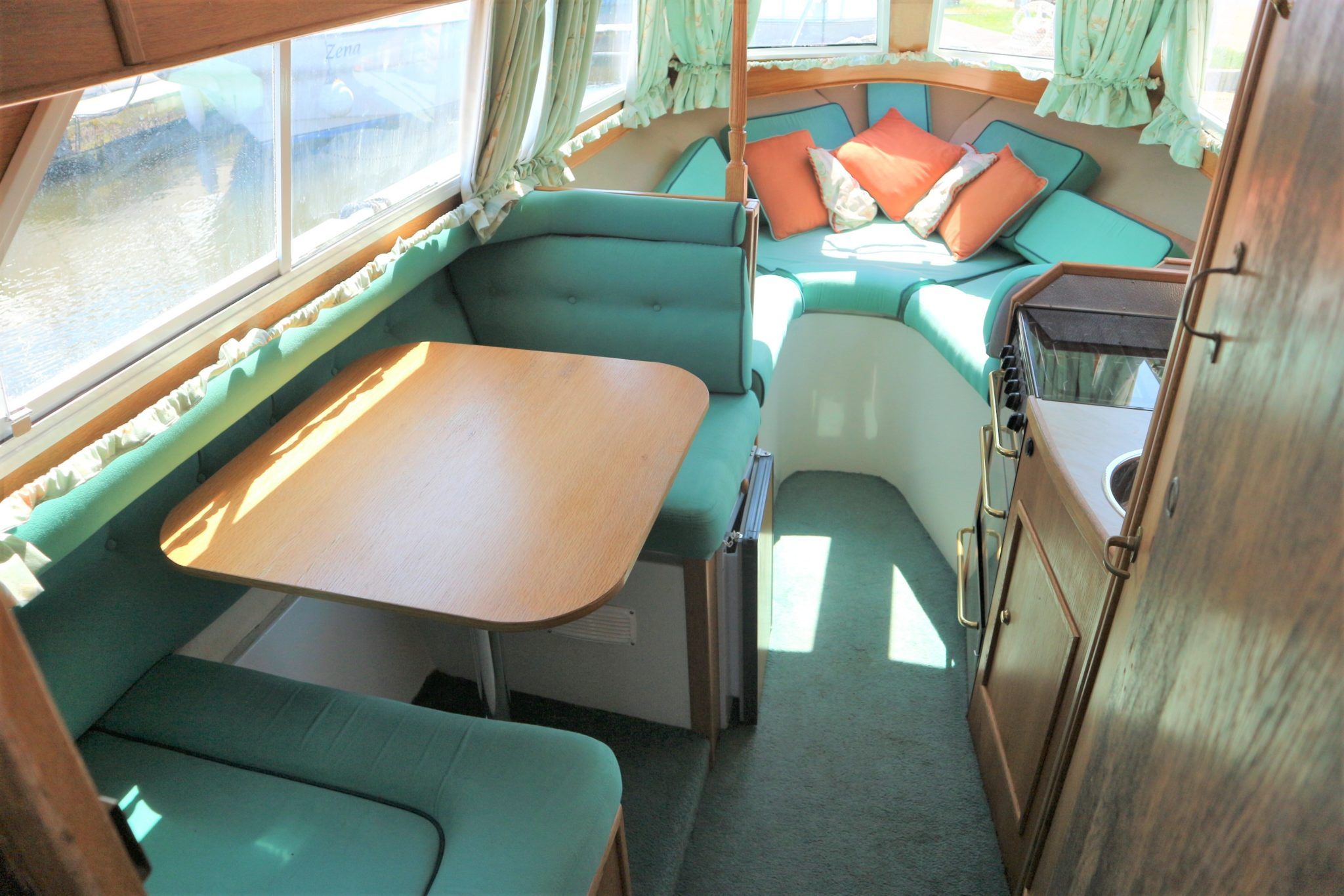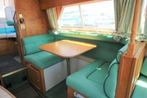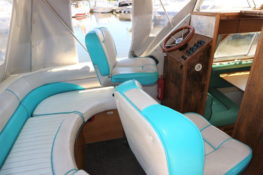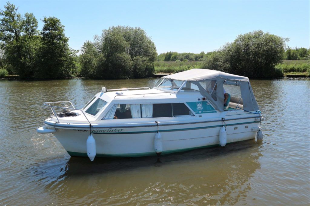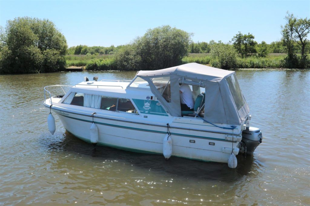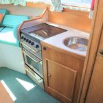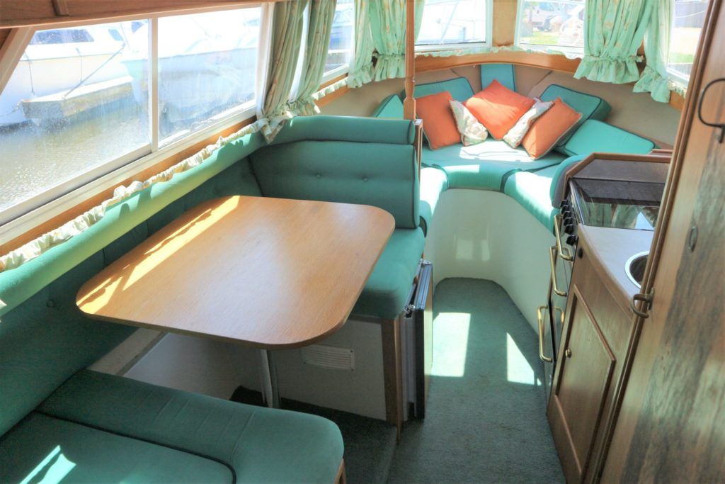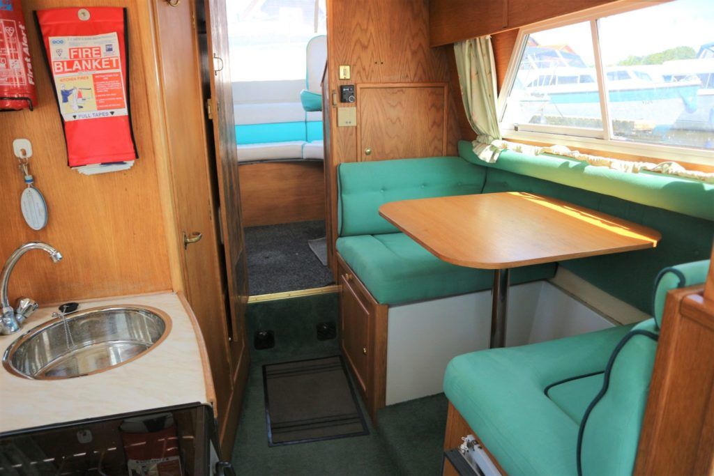 VIKING JUBILEE 20 – 1999 – 1 x Honda 20hp outboard engine (fitted 2013). 4 berth accommodation with 1 x portaloo & shower compartment. Galley with full size gas cooker & electric fridge. Spec including Propex warm air heating, water heater, folding windscreens for access through lower bridges, BSC 09/19. An ideal starter boat offering spacious & versatile accommodation with a sociable cockpit.