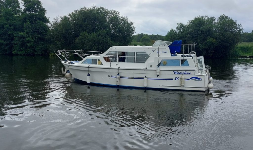 Viking Waterline 30 = 2002 – Powered by a single Nanni 43hp diesel engine through a shaft. 6 berth accommodation over three cabins. Specification to include; bow thruster, shore power, dual helm positions, warm air heating, holding tank, folding screens. Sgt Tom offers lots of space for a 30ft boat, and is an ideal craft to explore the Norfolk Broads. BSC 31/03/2026