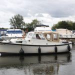 VINGA MARIN 25 – 1970 – Single Volvo 23hp diesel on shaft. 4 berths which include a double forward berth and twin single aft cabin and toilet, new 3 burner stove, electric toilet, BSC is until March 2021, recently fully re-upholstered, with new flooring and canopy, anchor and chain, navigation lights, fire extinguishers, fire blanket. Perfect river boat and simple layout makes it easy to use and ideal first time boat.