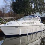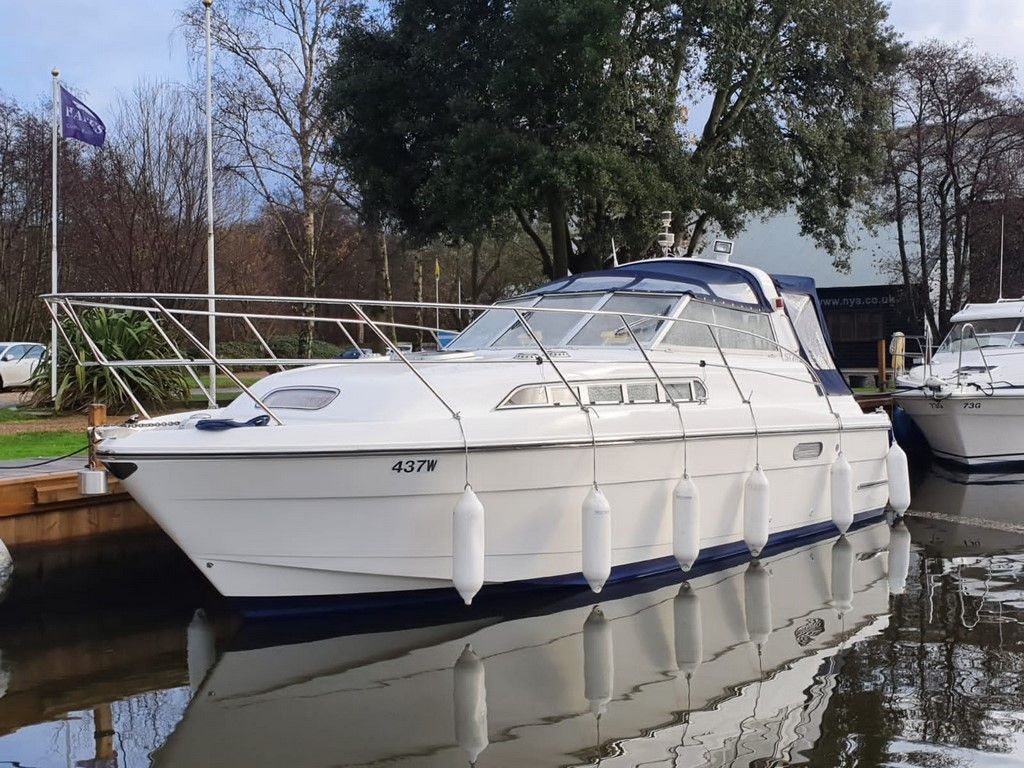 WESTWOOD ST29 – 2011 – Powered by a single Volvo D2-55 – 2 berth accommodation with one toilet and shower – Well specified to include; Vetus bowthruster, Victron Combi 2000w inverter and battery charger, holding tank, Webasto warm air heating, electric windlass with helm and deck controls, shore power with 240v immersion and sockets, Raymarine Bidata. Synthetic teak laid bathing platform. Folding radar arch and screens for increased inland access. Well maintained by previous owner, now NYA Stock presented in fantastic order throughout benefitting from a full machine polish, antifoul and mechanical inspection!