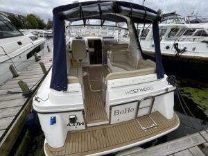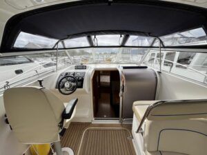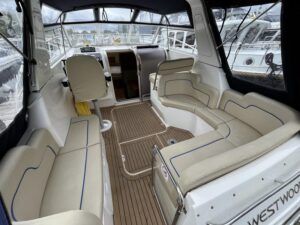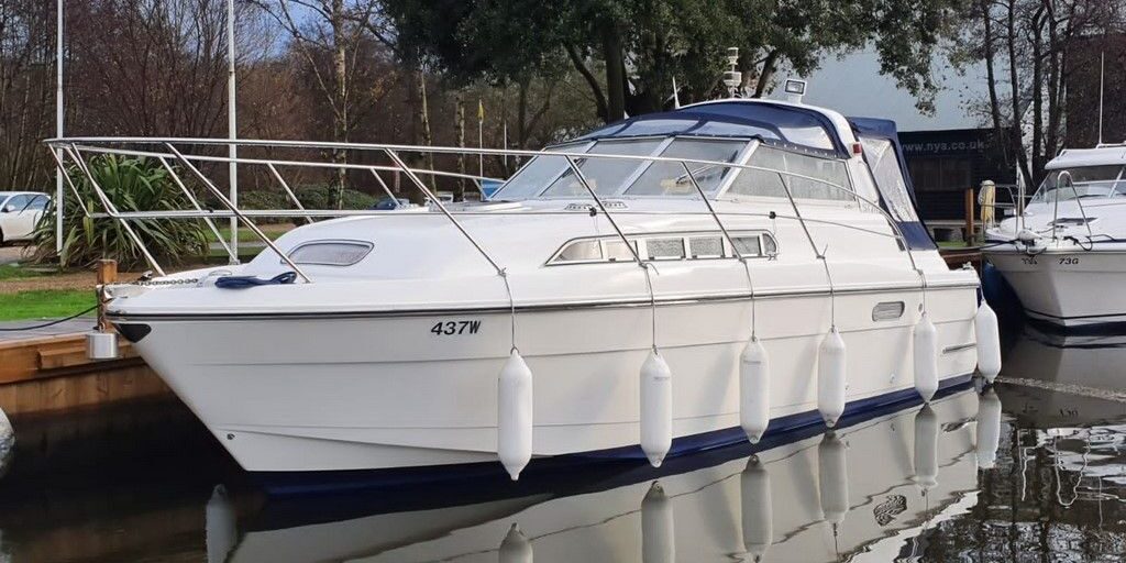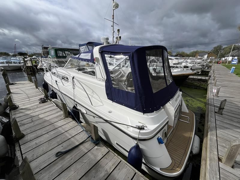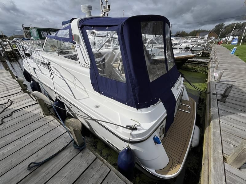 Westwood ST29 – 2011 – Powered by a single Volvo D2-55hp diesel engine. Luxury 2 berth accommodation with one electric toilet and shower. Well specified to including bow thruster, Victron 2000w inverter and battery charger, holding tank, warm air heating, electric windlass, shore power, immersion, Raymarine Bidata, Synthetic teak laid bathing platform & Cockpit. Folding radar arch and screens for increased inland access. A beautifully presented example of this ever popular model. NYA STOCK – Sold with 3 month engine & gearbox warranty.