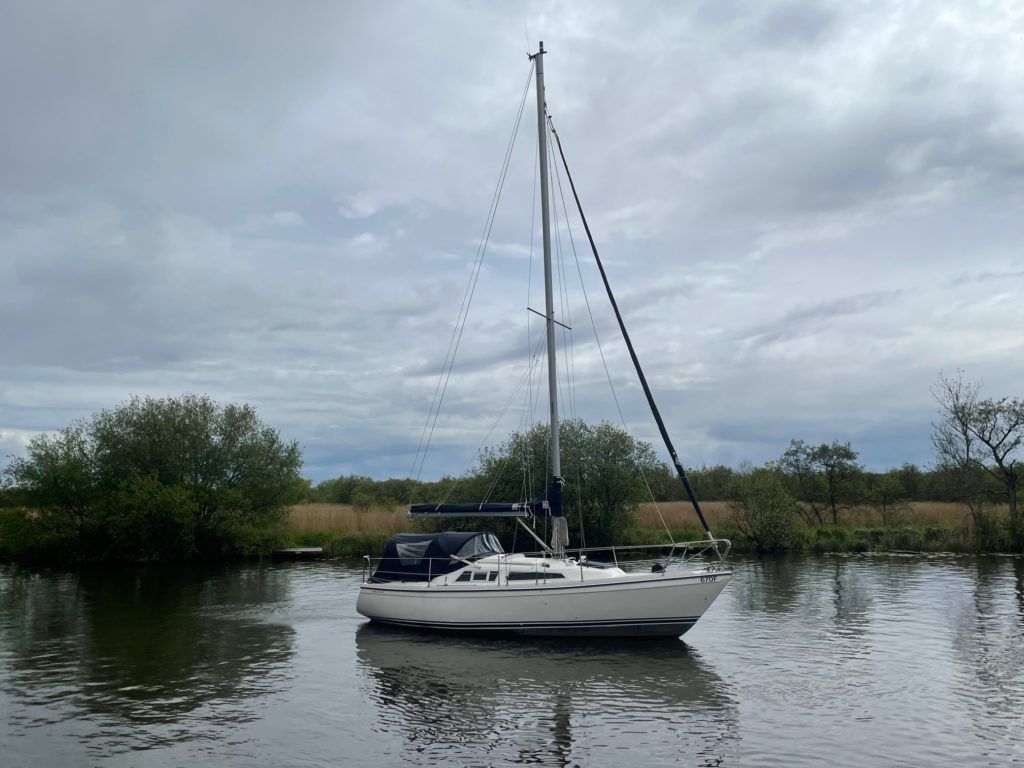 WHITE SILK 28 SAILING YACHT – Built 1995 – Nanni 14hp diesel engine on sail drive, 6 berth accommodation, shallow fin keel, gas cooker, fridge, warm air heating system, hot and cold water system with calorifier, GPS, BSC until 2023, pumpout toilet, mast lowering a frame, furling jib, full sprayhood with cockpit extension, lazy jack system with boom cover, tiller steering extensive refurbishment done in 2018/19 , a spacious layout and suitable for extended cruises and a great family cruiser.