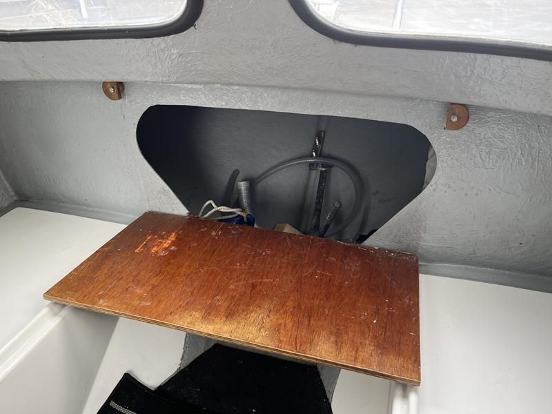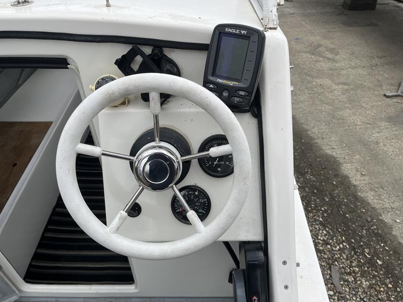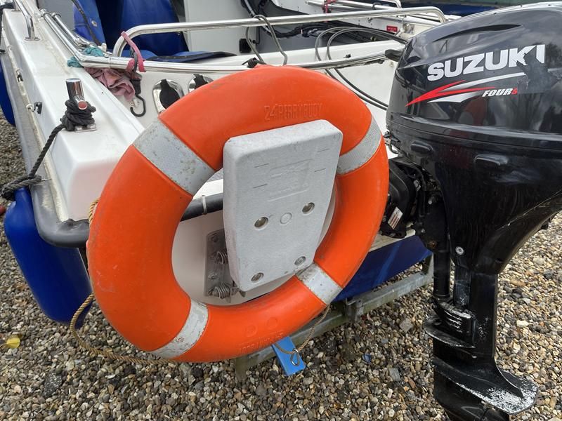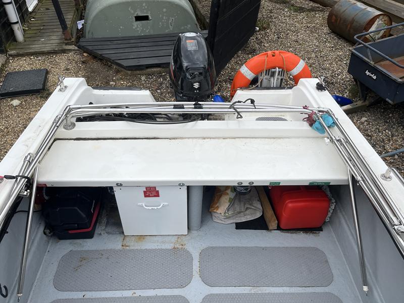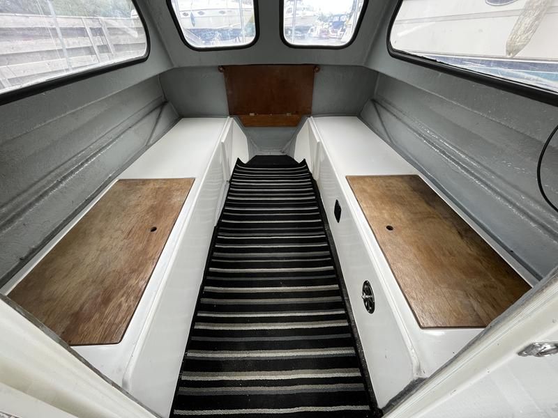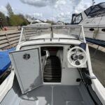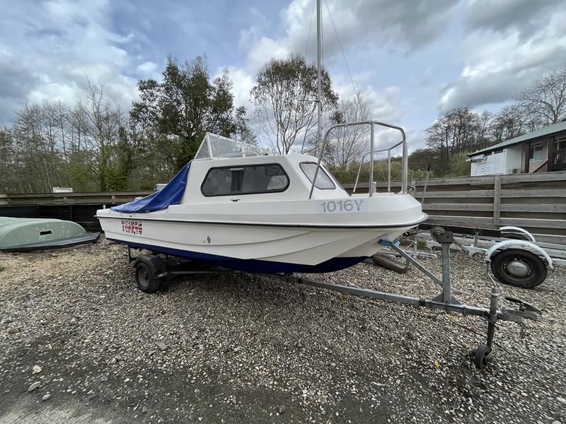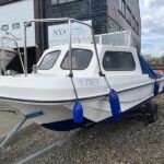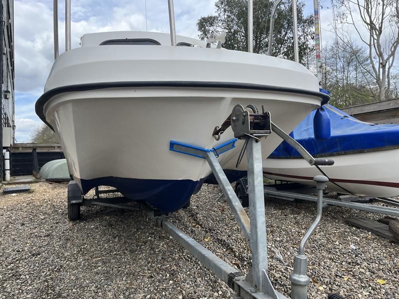 Wilson Flyer- 2010 – Powered by a Suzuki 15hp four stroke outboard engine. Spacious deck with a cabin, making it ideal for fishing. Specification to include; Propex hot air heating, navigation lights, Eagle fishfinder, VHF radio, compass, 12v sockets and more. Engine service 2024. Antifouled 2025. Comes with the road trailer and full canopy. Solid and stable, ideal platform for fishing.