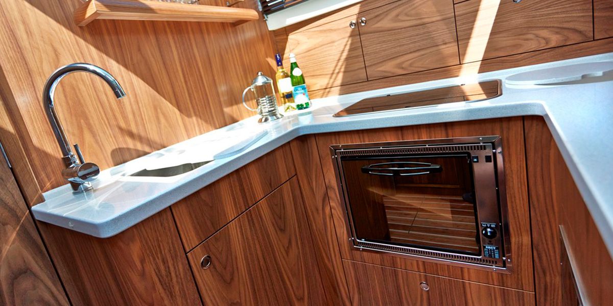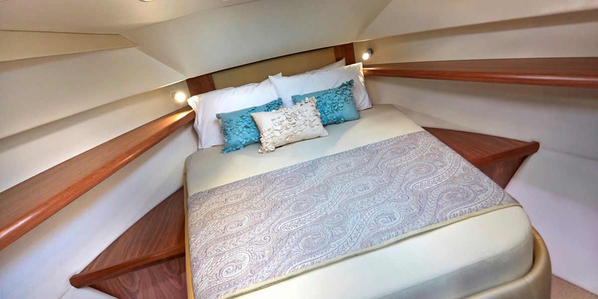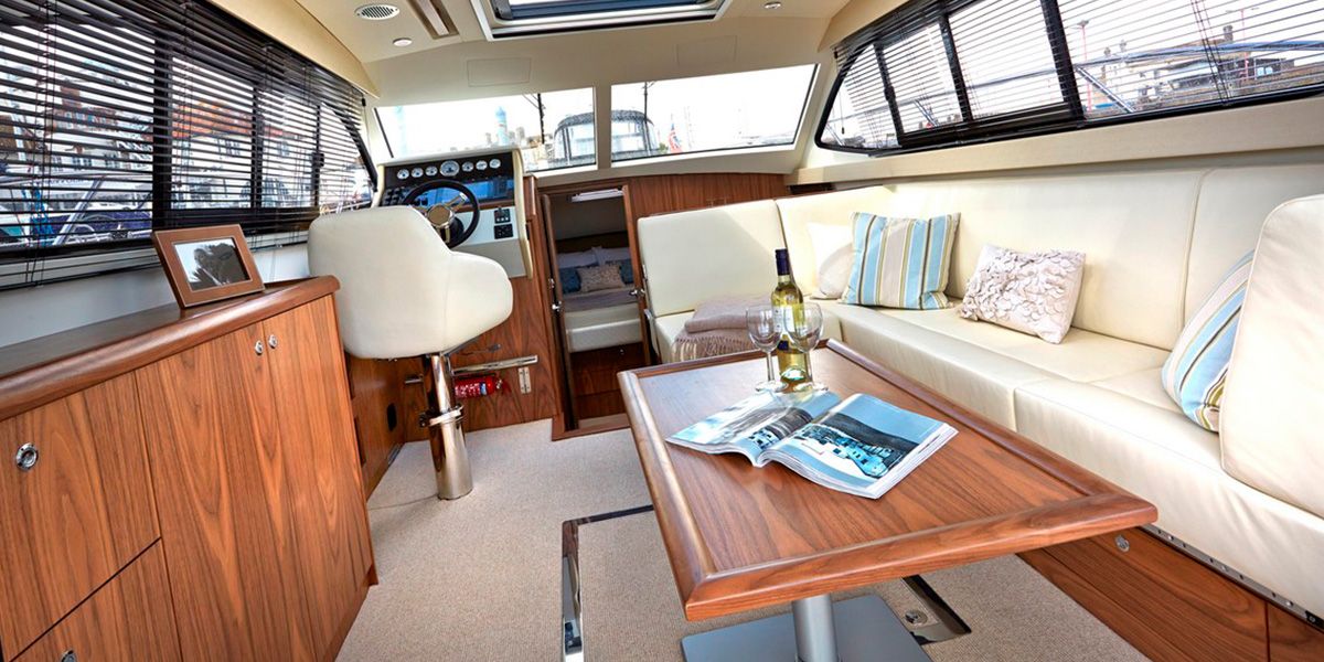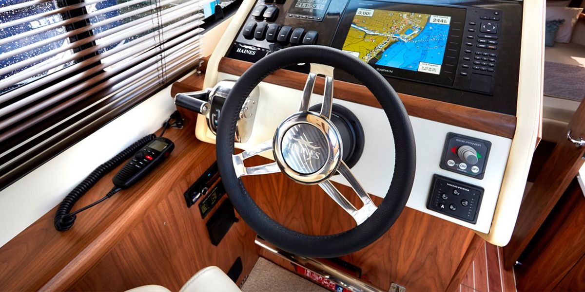 With a full offshore planing hull designed by renowned designer Andrew Wolstenholme, delivers a comfortable performance at low to intermediate planing speeds. Offered with a range of single or twin engine options and Haines unquestionable build quality. Light and airy throughout, with full opening ‘slide and stack’ patio doors connecting the saloon to the aft deck area. The large island double en-suite cabin forward and generous galley provides excellent accommodation for those longer stays onboard.