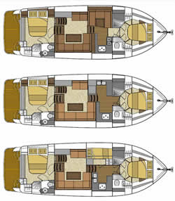 The flagship of the Haines fleet offers the choice of two hull designs, semi displacement or medium vee planing.