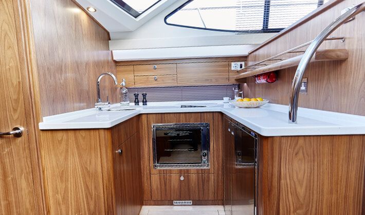 The semi-displacement 400 is available with single engine installation whilst the planing 400 provides a plus 30 knot performance with the larger twin engine options.