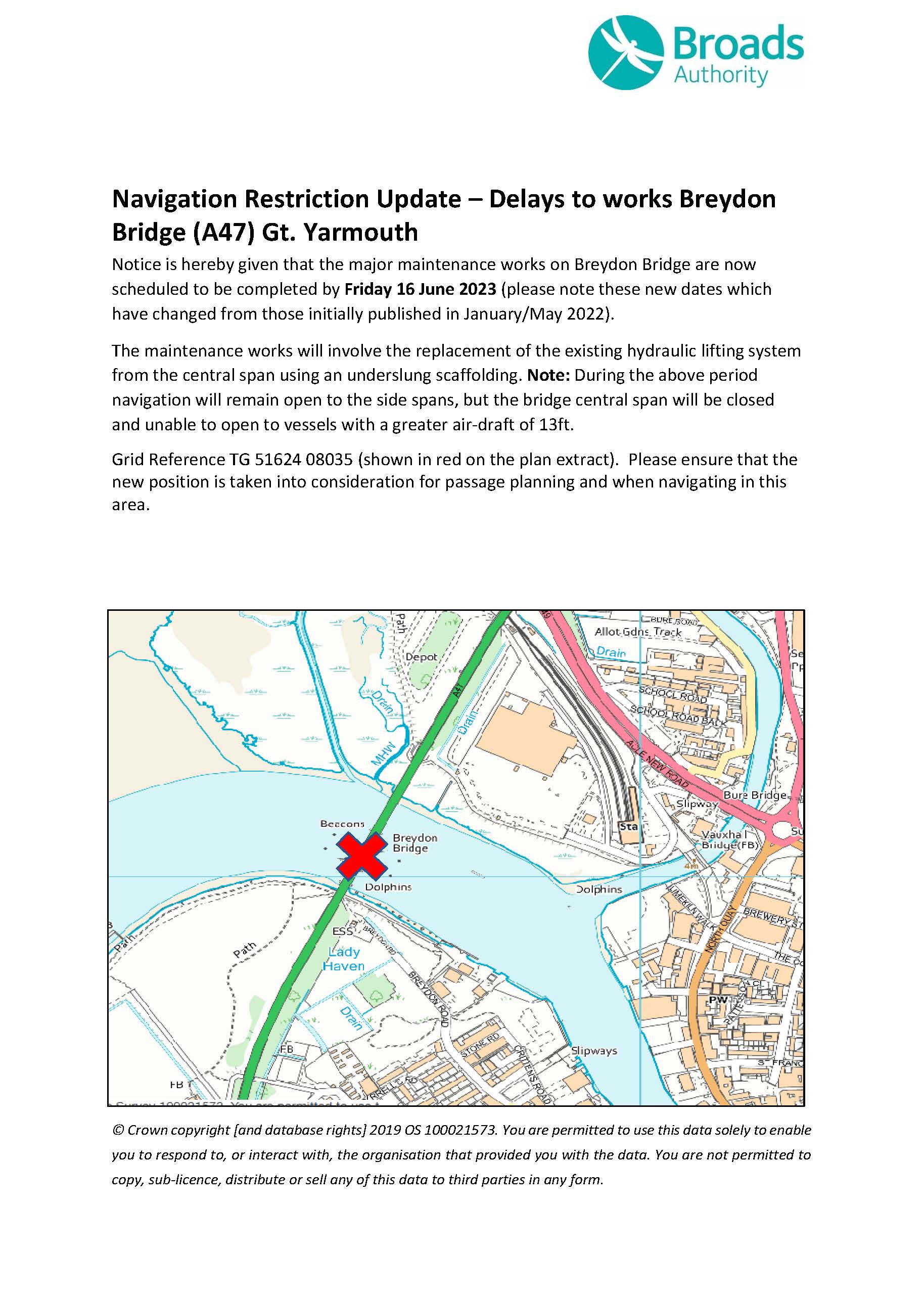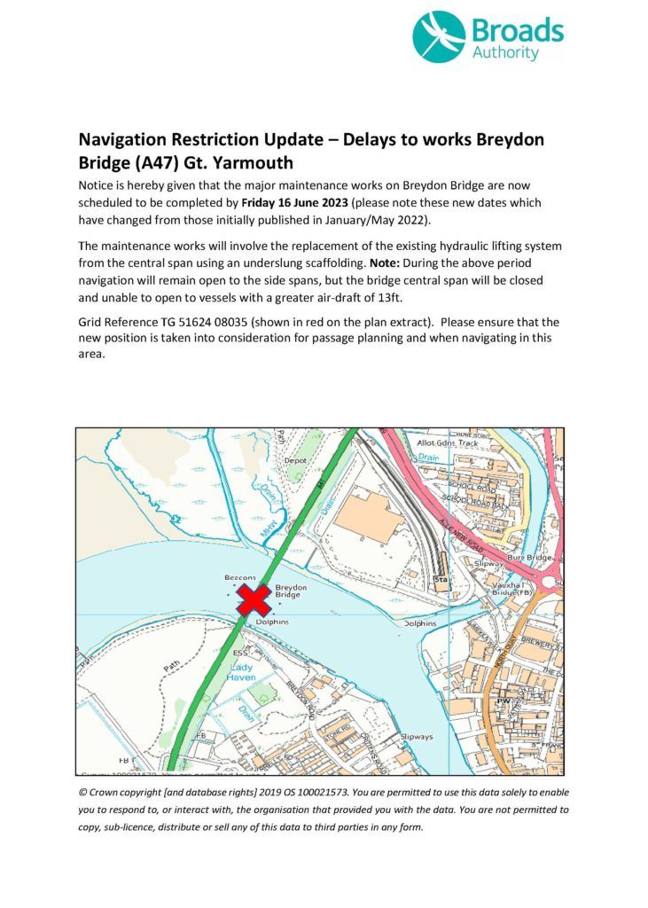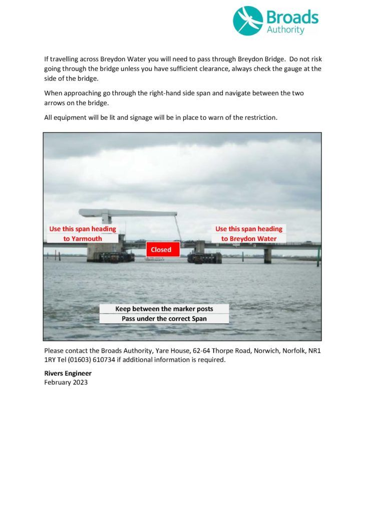 NTM 03 2023 – Update to navigation restriction at Breydon Bridge