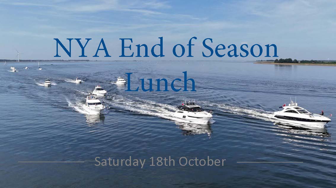 | Join us for our End of Season Lunch, on Saturday 18th October 2025 at the Dukes Head Somerleyton Drinks from 1200hrs – Lunch 1300hrs Arrive by car, boat or train! Tickets are £25 per head, menu below Book your places now by emailing danni@nya.co.uk with your menu choices. |
