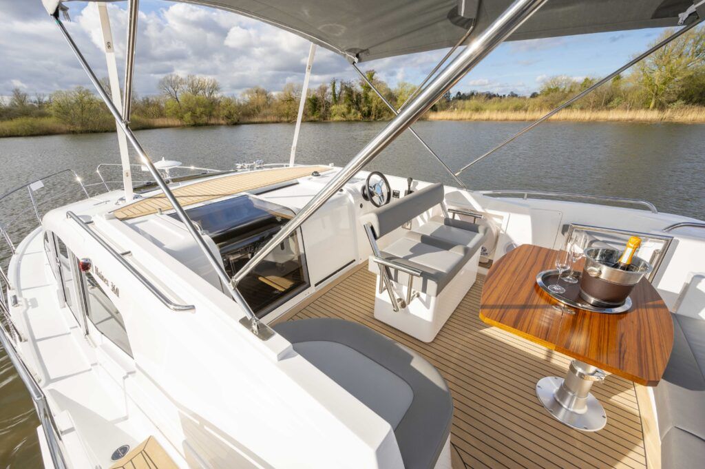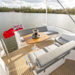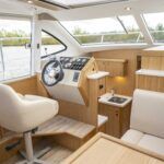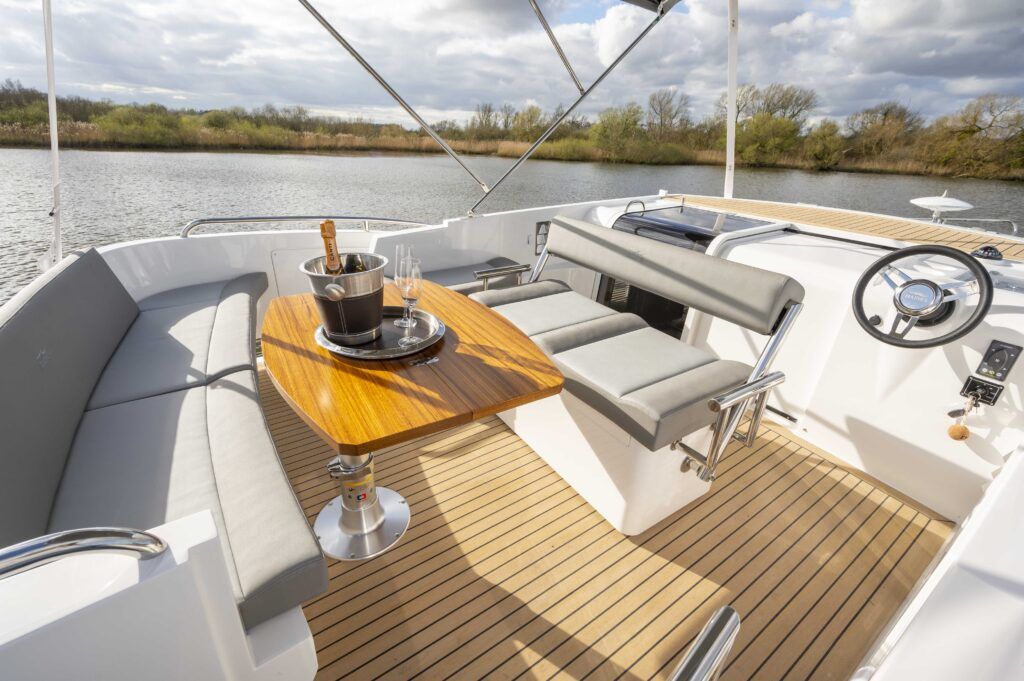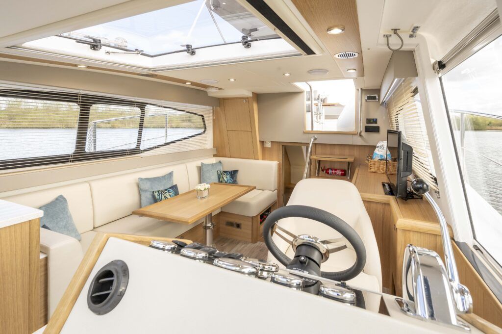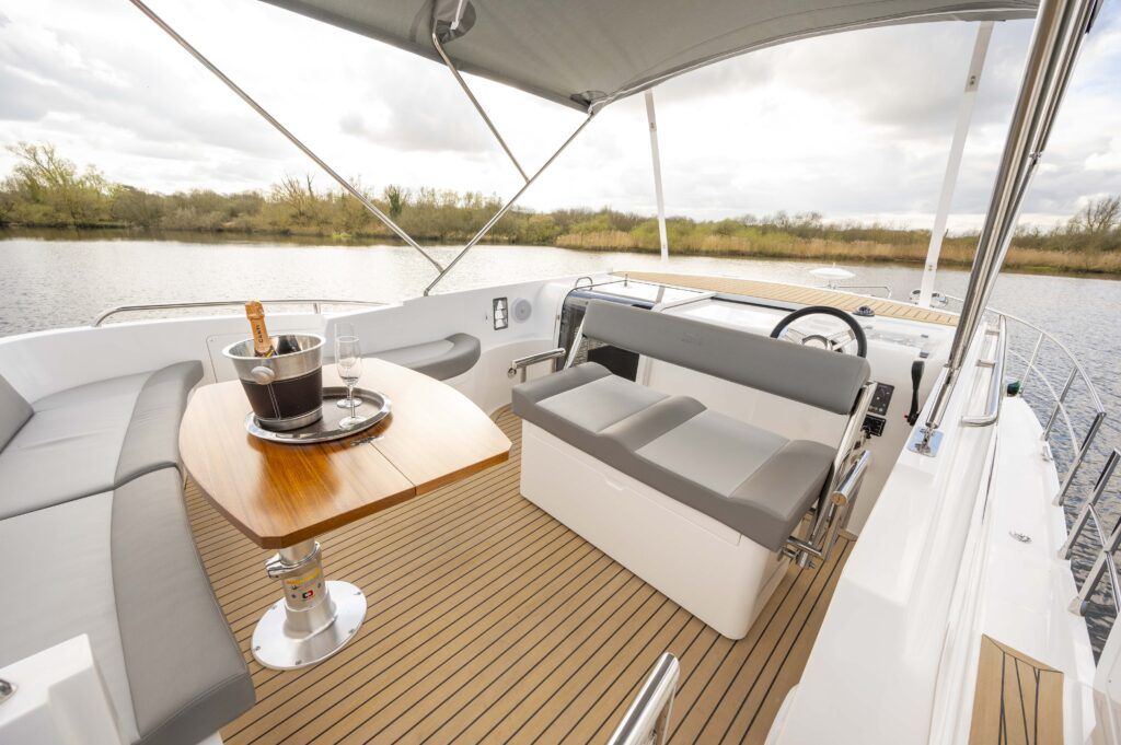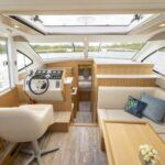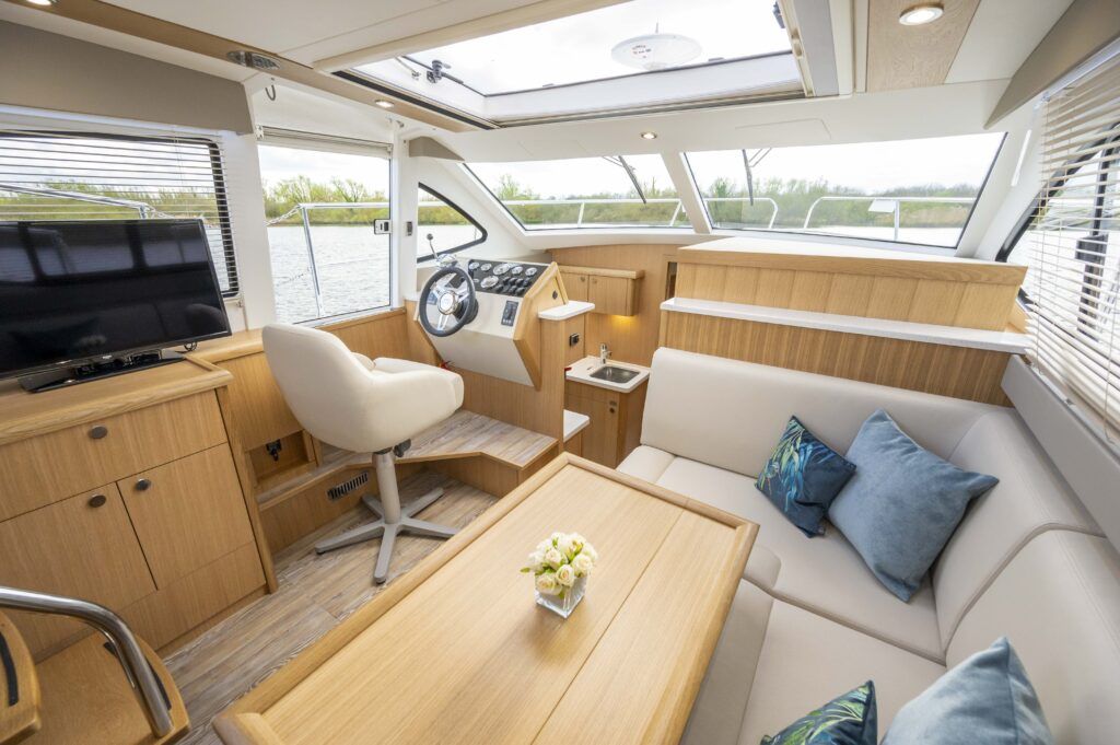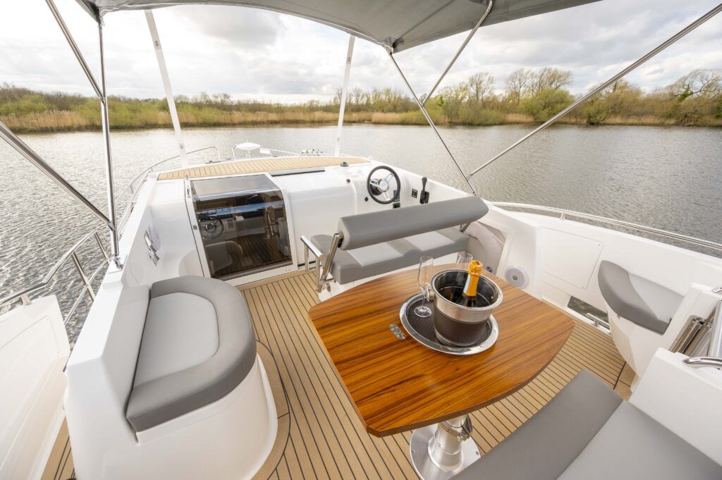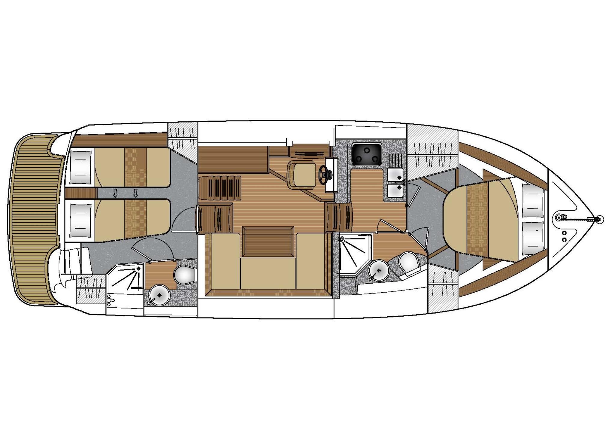 Enya, built by Haines Marine for the NYA Charter Fleet for the 2024 season & offering a contemporary and luxurious cruising experience for four. Featuring two en-suite cabins with island double berths (or one with 2 singles) making her ideal for couples or groups of friends & family. The spacious cushioned flybridge deck with table offers fantastic views across the countryside whilst dining or relaxing under the Bimini sunshade. Her beautifully fitted light Oak interior is both comfortable and stylish with two fridges serving the Saloon and Galley areas. Bow and stern thrusters make her a joy to handle. Experience the highest level of boat ownership with all of the modern comforts on board. For a video walk-through of Enya please CLICK HERE
