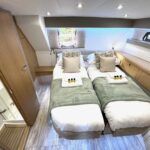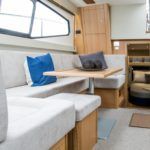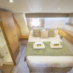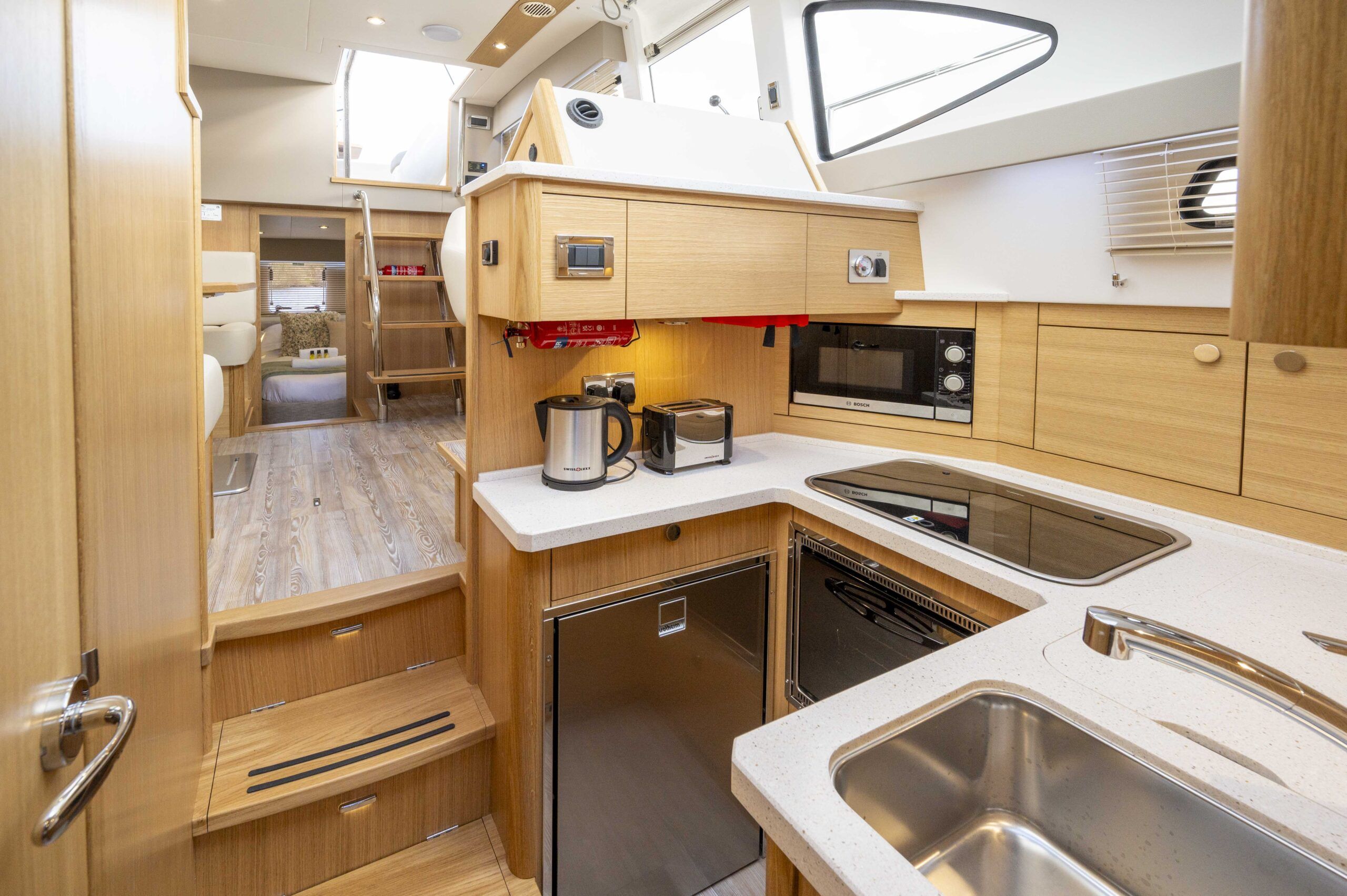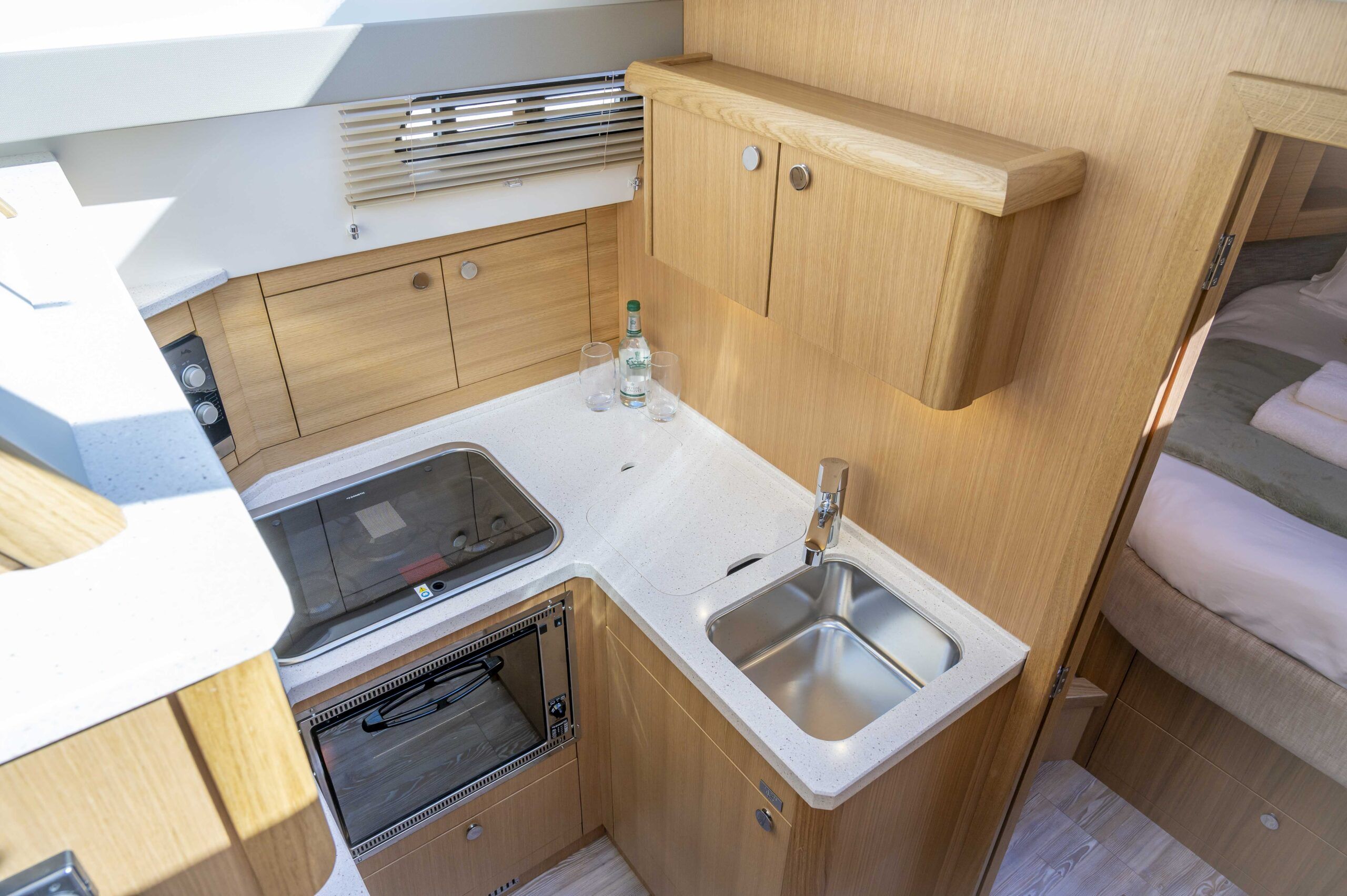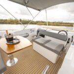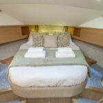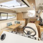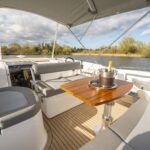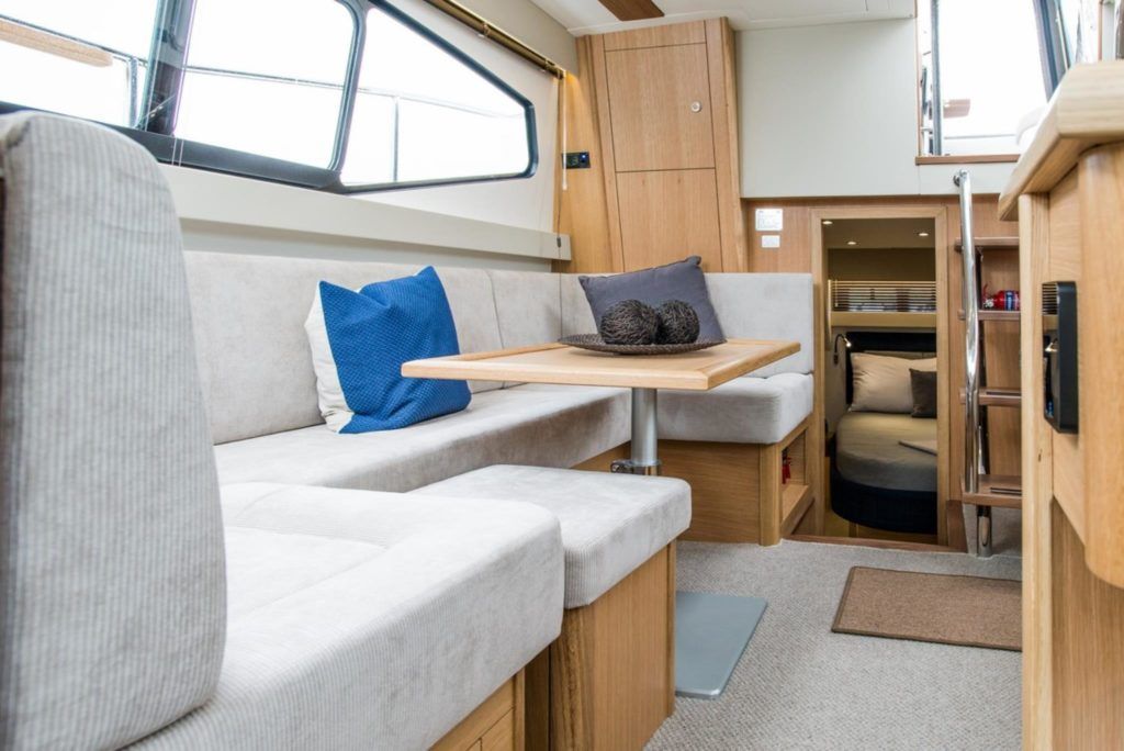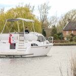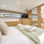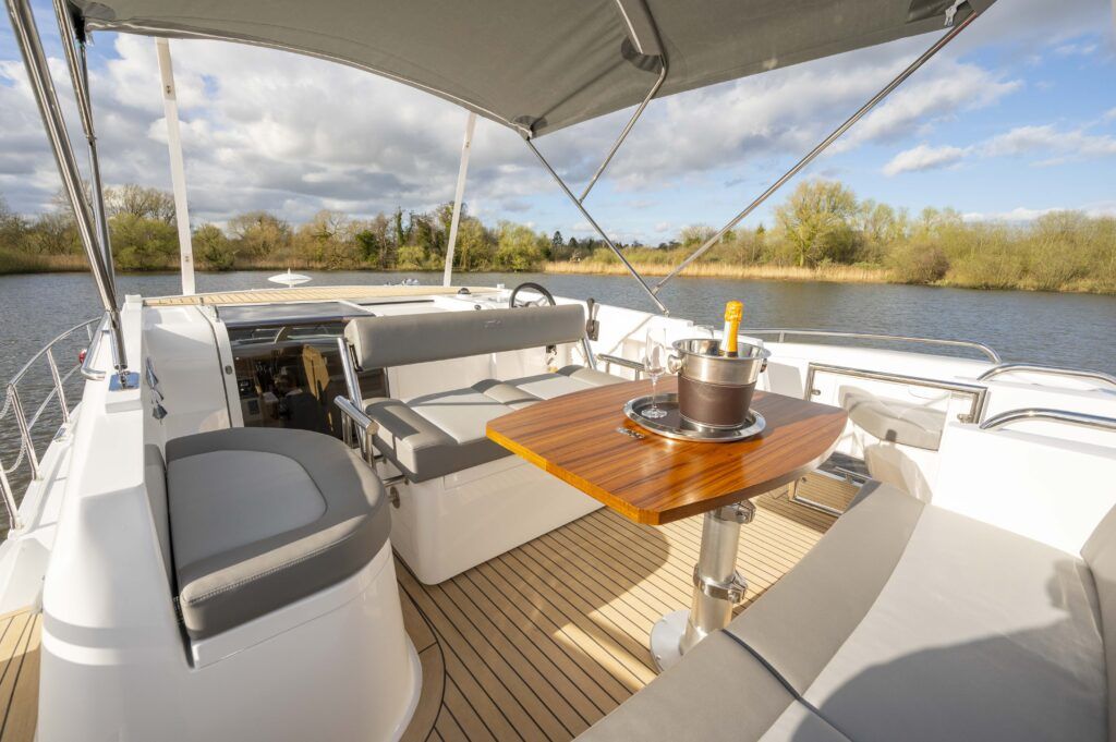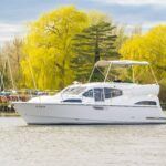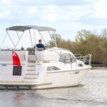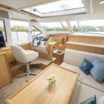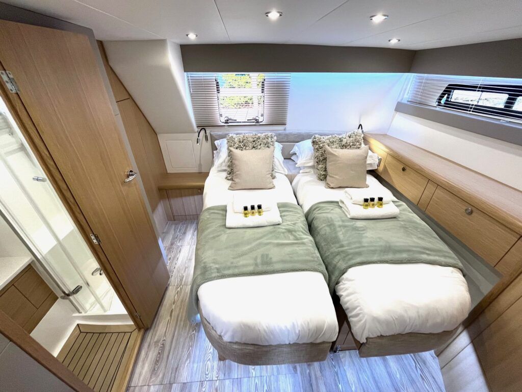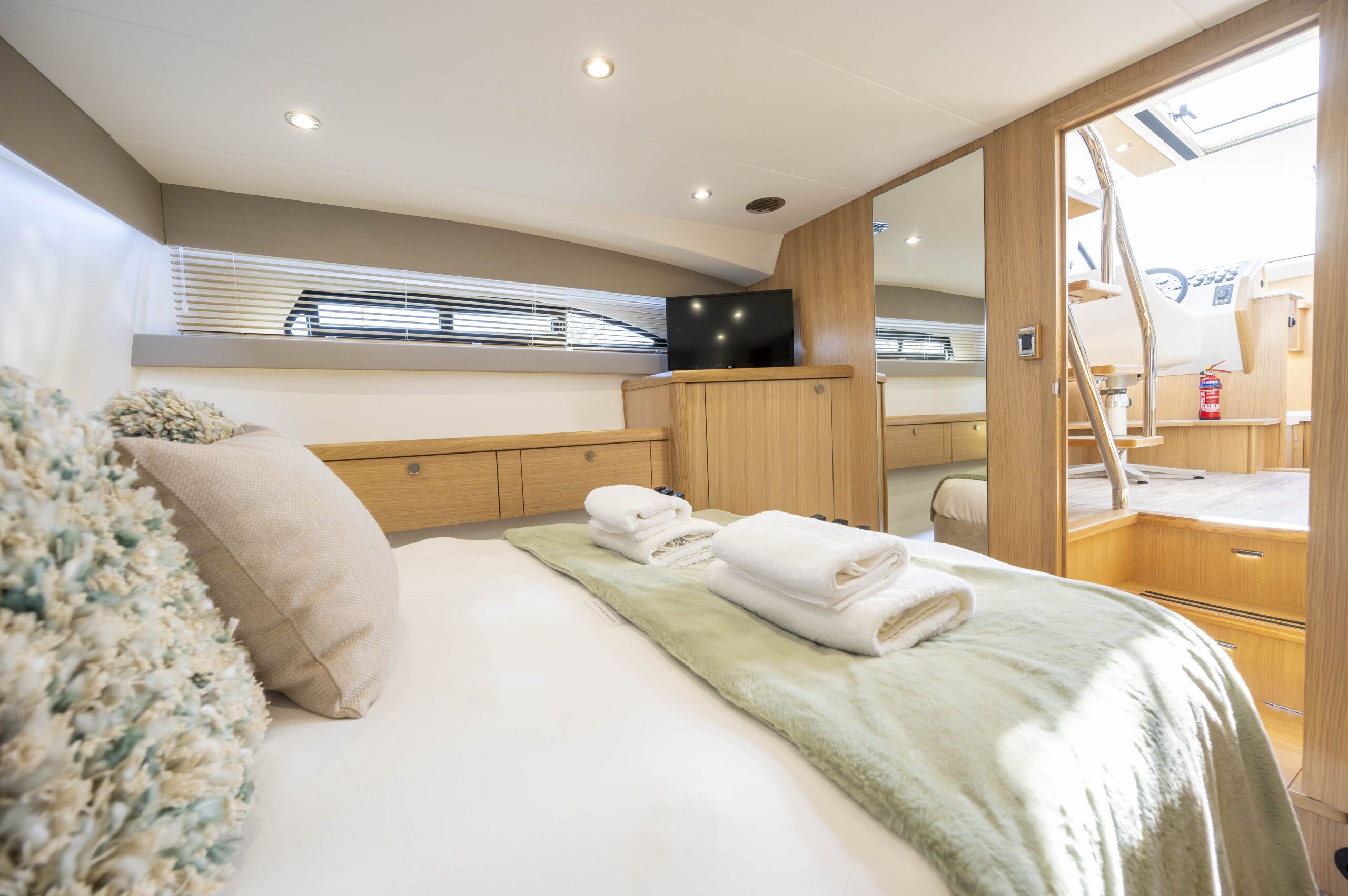 Enya, built by Haines Marine for the NYA Charter Fleet for the 2024 season & offering a contemporary and luxurious cruising experience for four. Featuring two en-suite cabins with island double berths (or one with 2 singles) making her ideal for couples or groups of friends & family. The spacious cushioned flybridge deck with table offers fantastic views across the countryside whilst dining or relaxing under the Bimini sunshade. Her beautifully fitted light Oak interior is both comfortable and stylish with two fridges serving the Saloon and Galley areas. Bow and stern thrusters make her a joy to handle. Experience the highest level of boat ownership with all of the modern comforts on board. For a video walk-through of Enya please CLICK HERE
