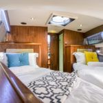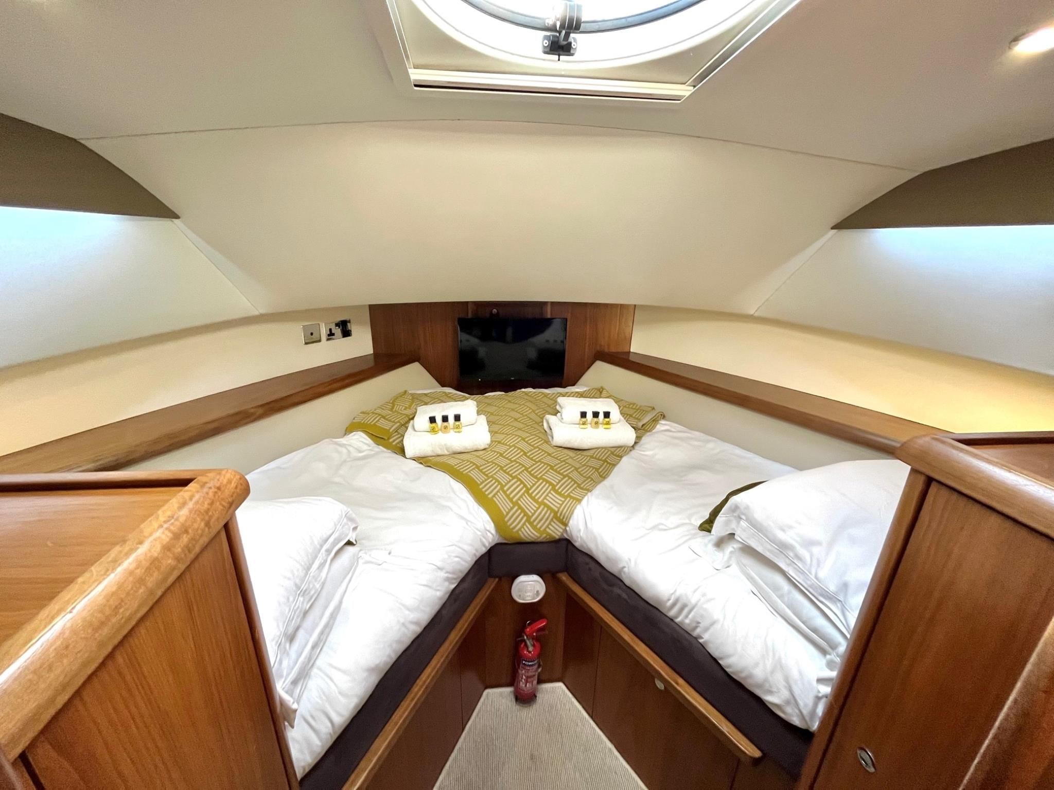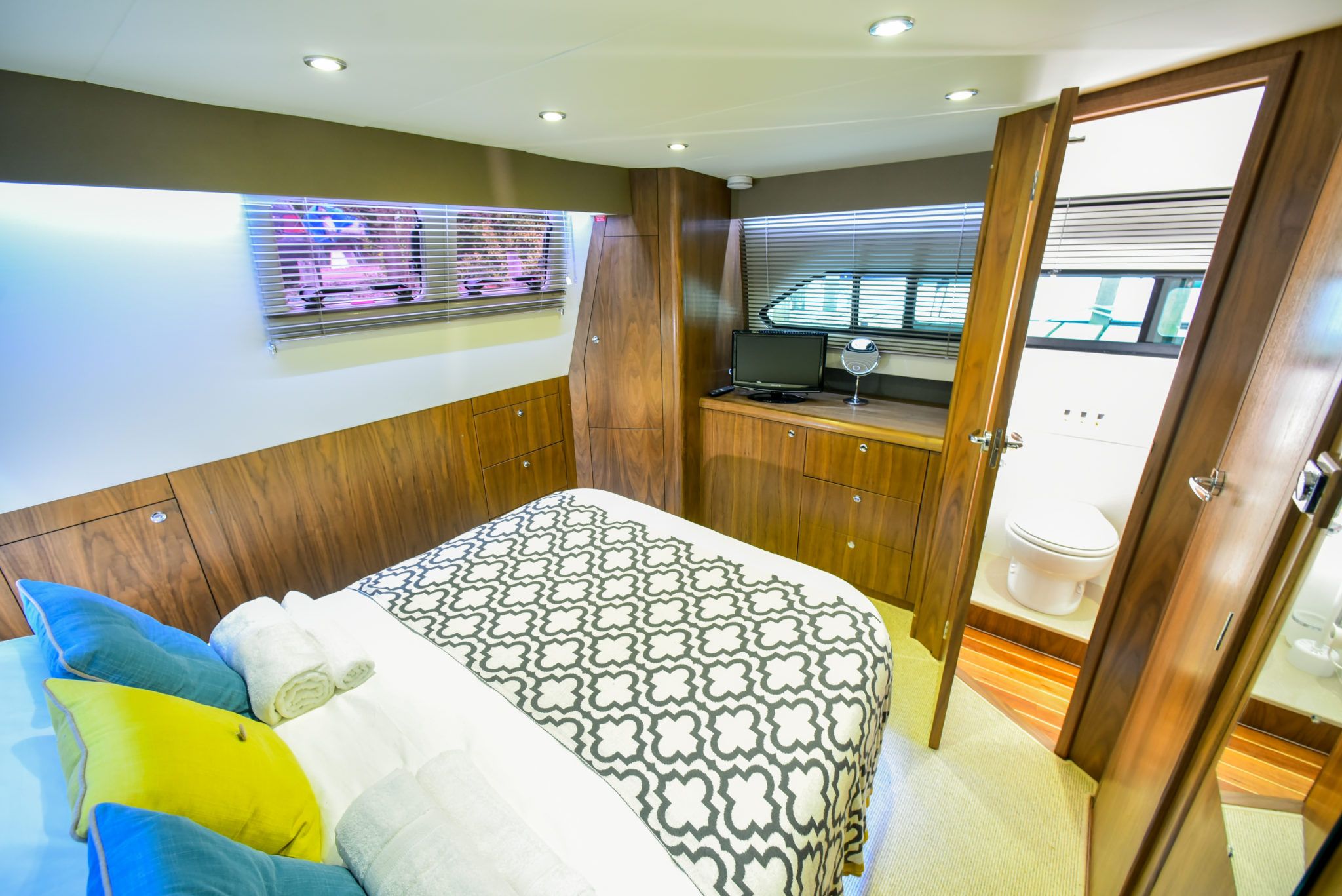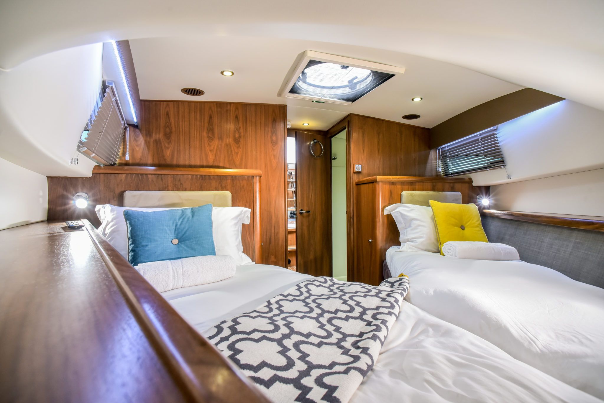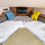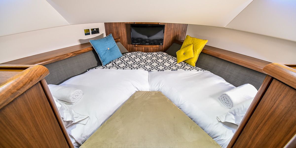 Beautiful Moneypenny showcases a modern design that boasts luxury fixtures & furnishings that provide for a more than comfortable boating adventure. Moneypenny is ideal for entertaining with a large sundeck for alfresco dining, complete with cushioned seating, table, fridge & deck lighting, allowing you to enjoy outdoor socialising long into the evening. The dual steering positions along with bow and stern thrusters make her a joy to handle. For a walkthrough video of Moneypenny please CLICK HERE