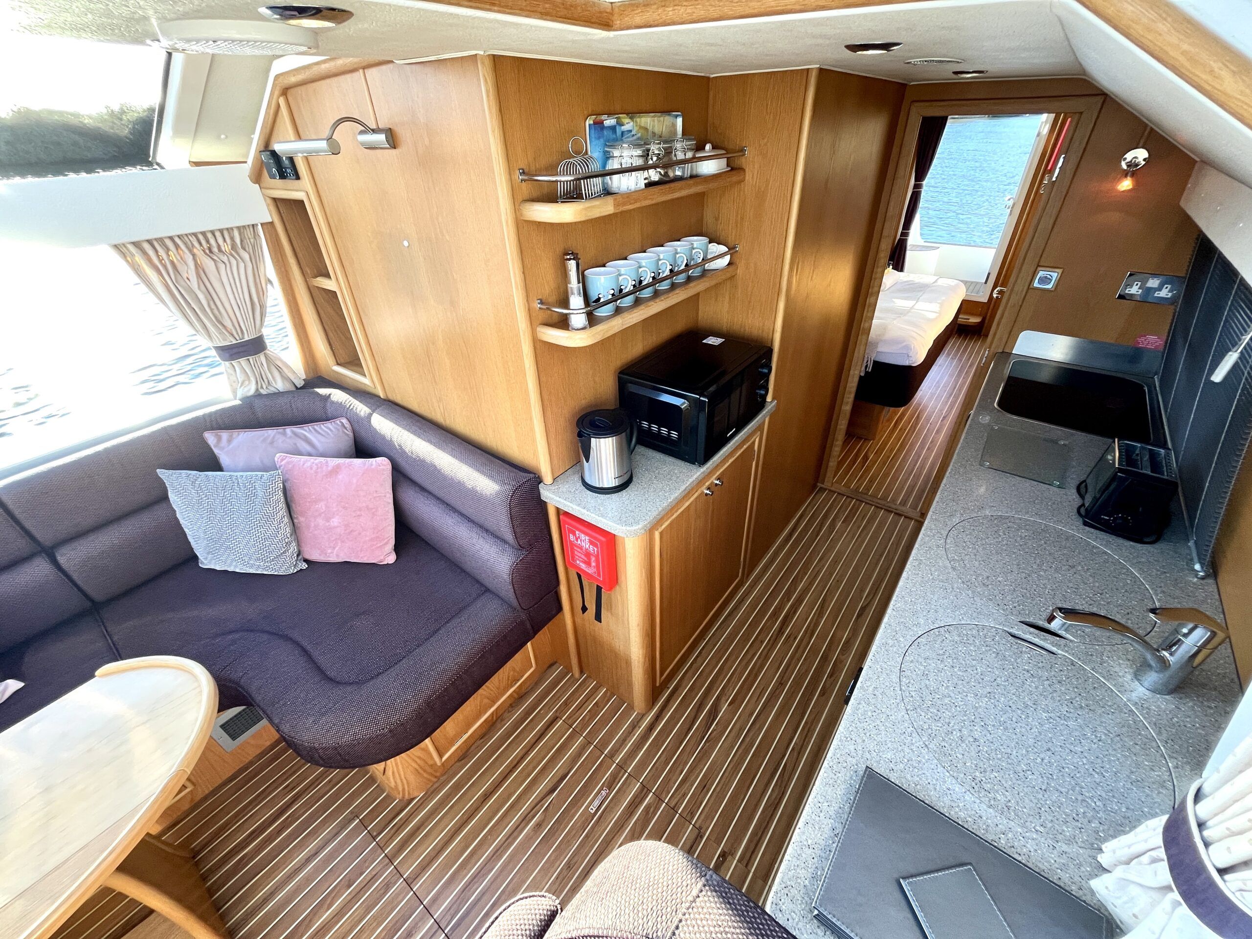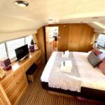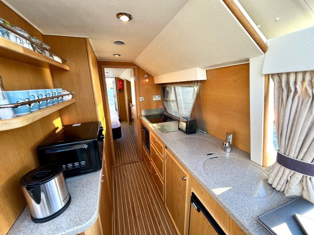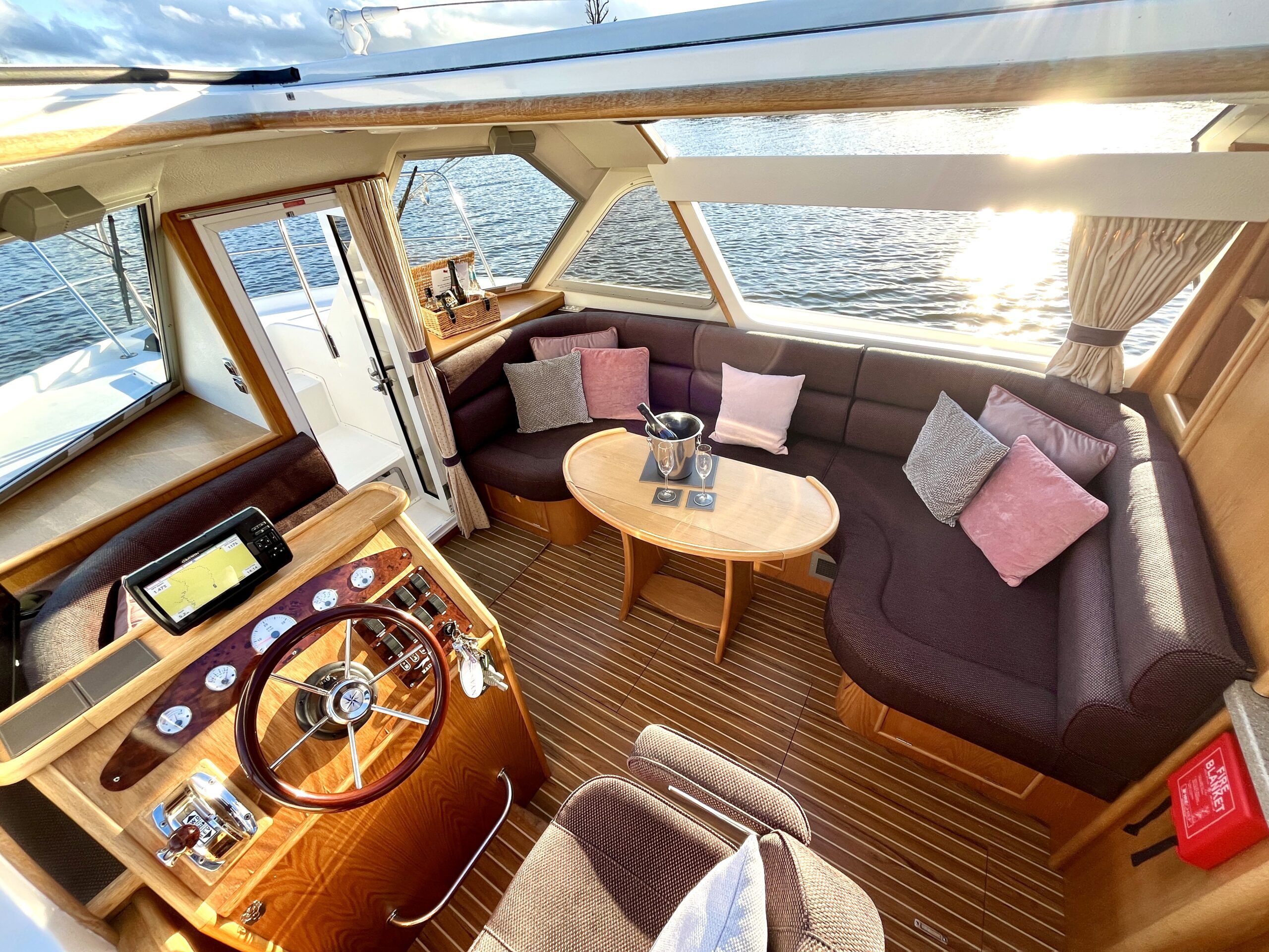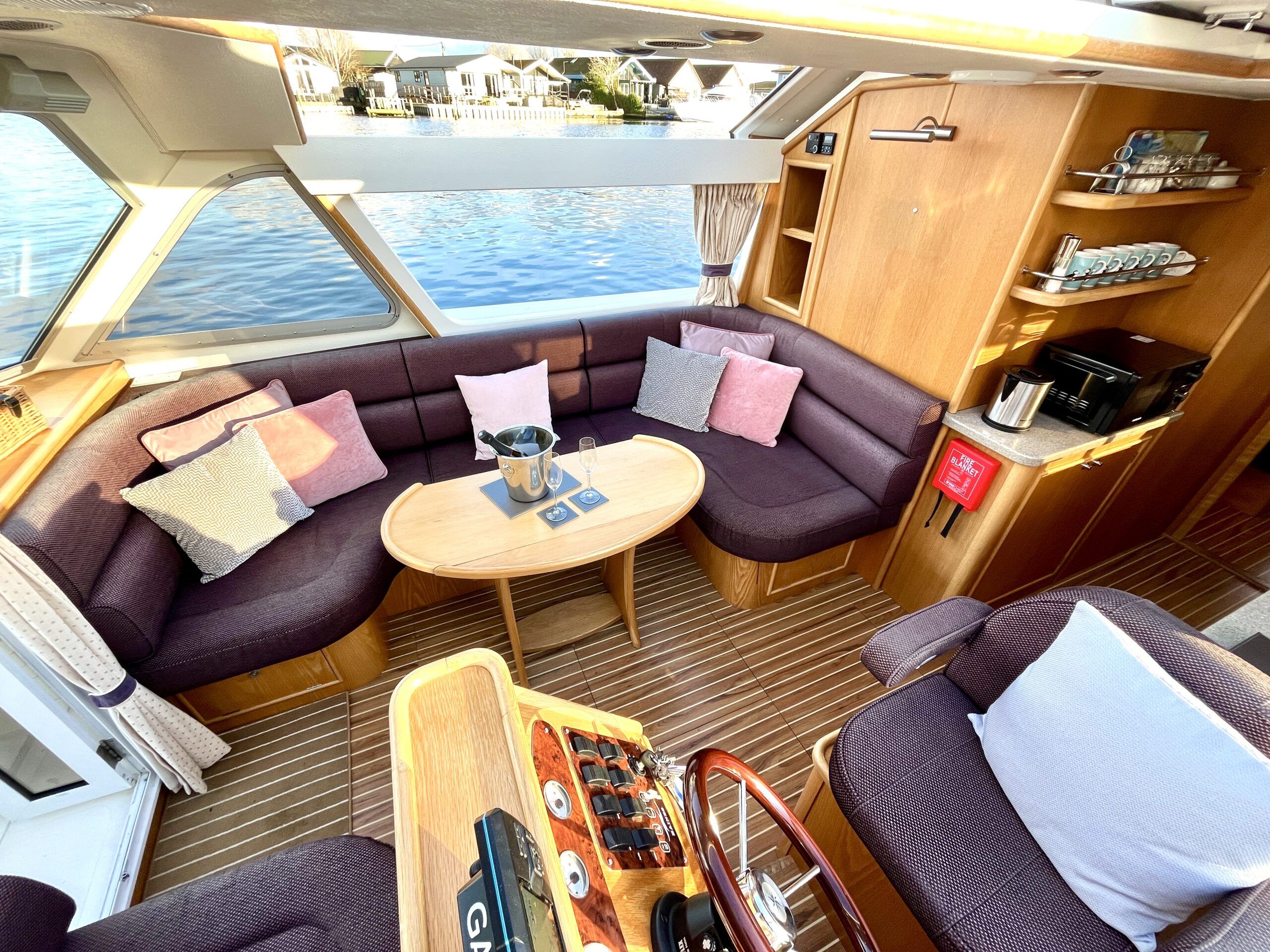 Olivia, a new addition for 2026 to the NYA Charter Fleet offering the ultimate in spacious and stylish accommodation for two. Featuring a light & airy oak interior with large island double cabin complete with ensuite and walk in shower. The spacious saloon & driving position with split sliding roof gives a luxuriously comfortable sun trap & offers fantastic views of the Broads whilst dining or relaxing. The beautifully fitted galley makes catering on board a pleasure. Bow and stern thrusters ensure handling is carefree. Experience the highest level of boat ownership with all of the modern comforts on board. Please contact 01603 713434 or email charter@nya.co.uk for availability and pricing in 2026.