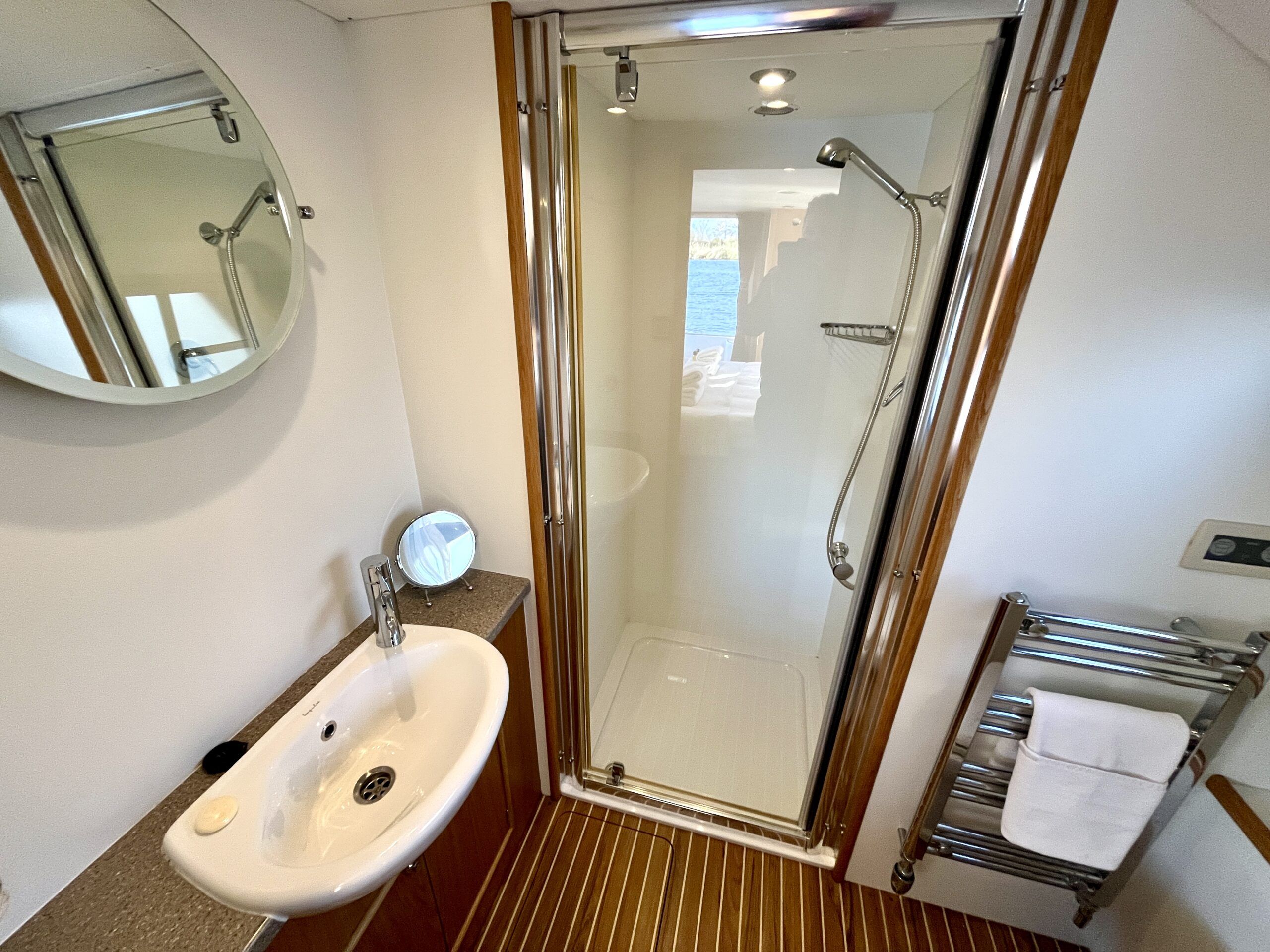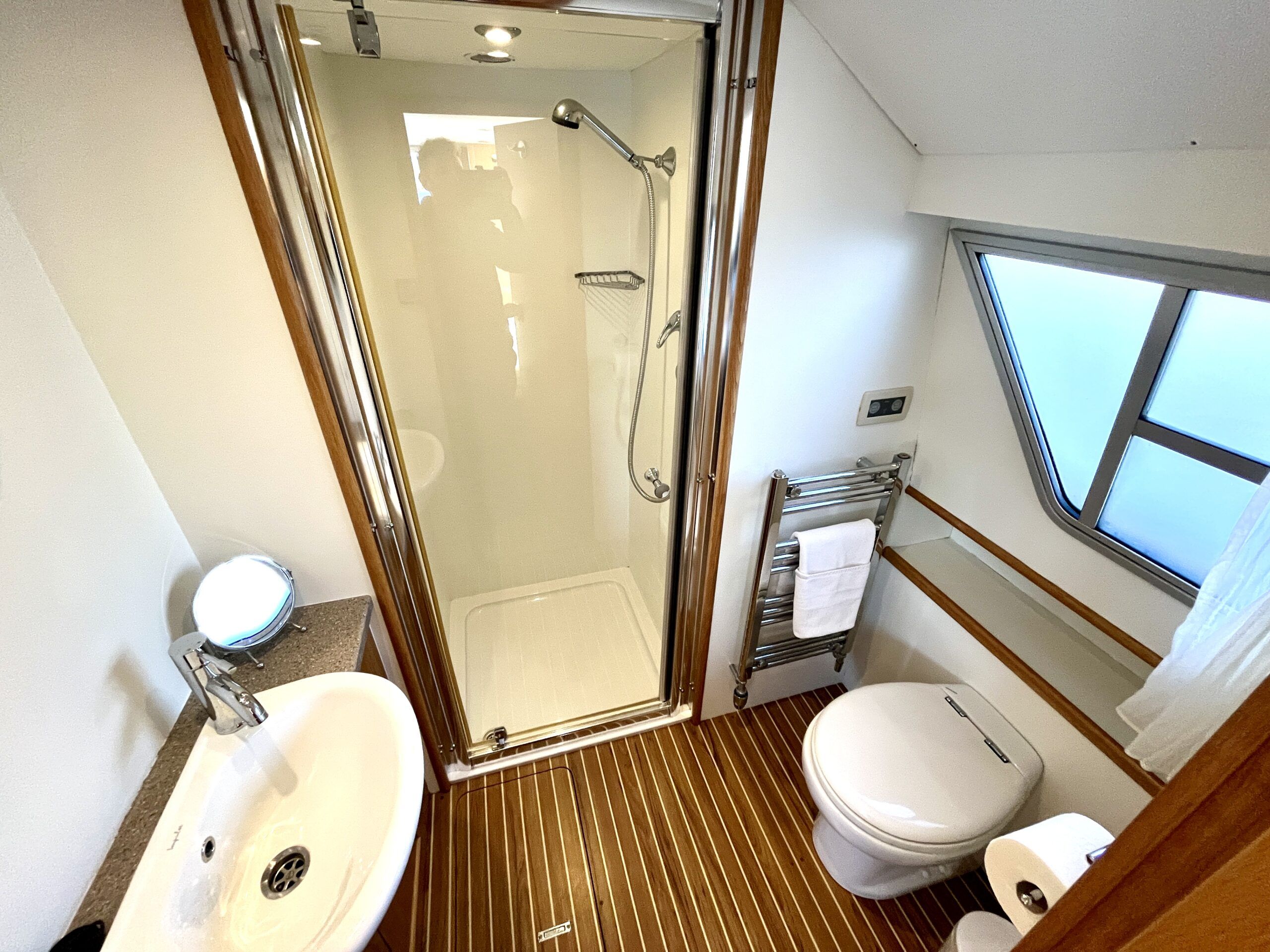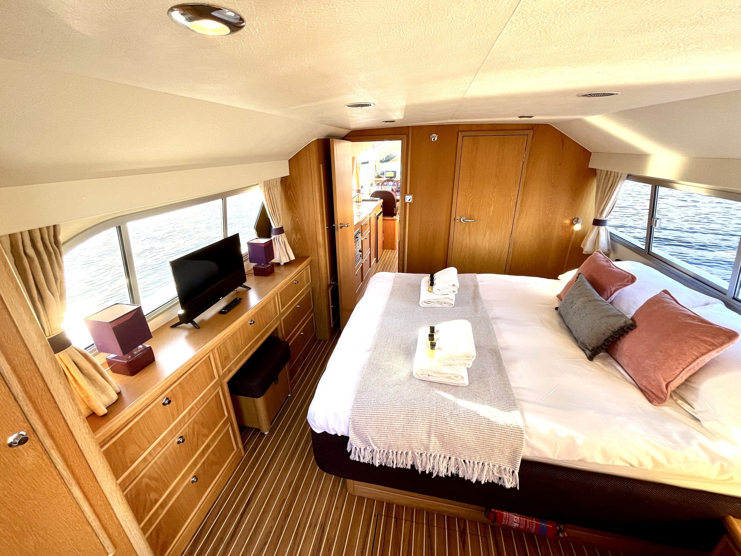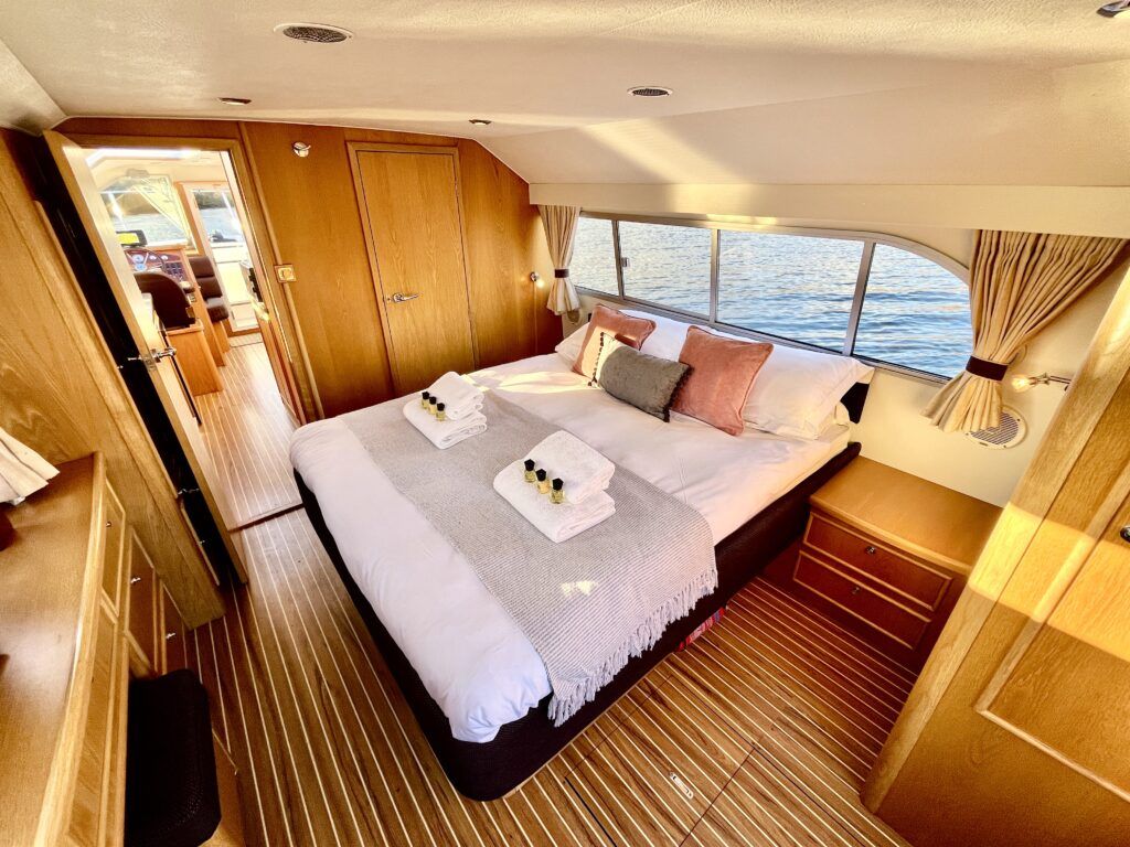 Olivia, a new addition for 2026 to the NYA Charter Fleet offering the ultimate in spacious and stylish accommodation for two. Featuring a light & airy oak interior with large island double cabin complete with ensuite and walk in shower. The spacious saloon & driving position with split sliding roof gives a luxuriously comfortable sun trap & offers fantastic views of the Broads whilst dining or relaxing. The beautifully fitted galley makes catering on board a pleasure. Bow and stern thrusters ensure handling is carefree. Experience the highest level of boat ownership with all of the modern comforts on board. Please contact 01603 713434 or email charter@nya.co.uk for availability and pricing in 2026.